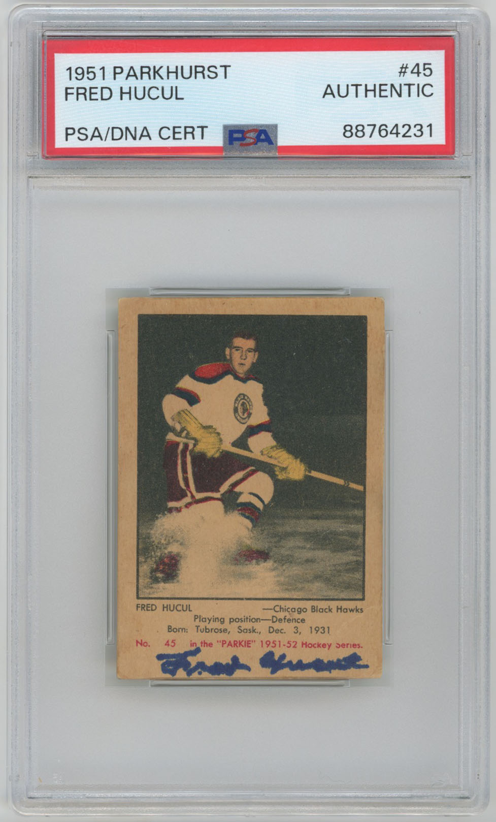 1951 Parkhurst 45 Fred Hucul Signed Rookie Card RC PSA