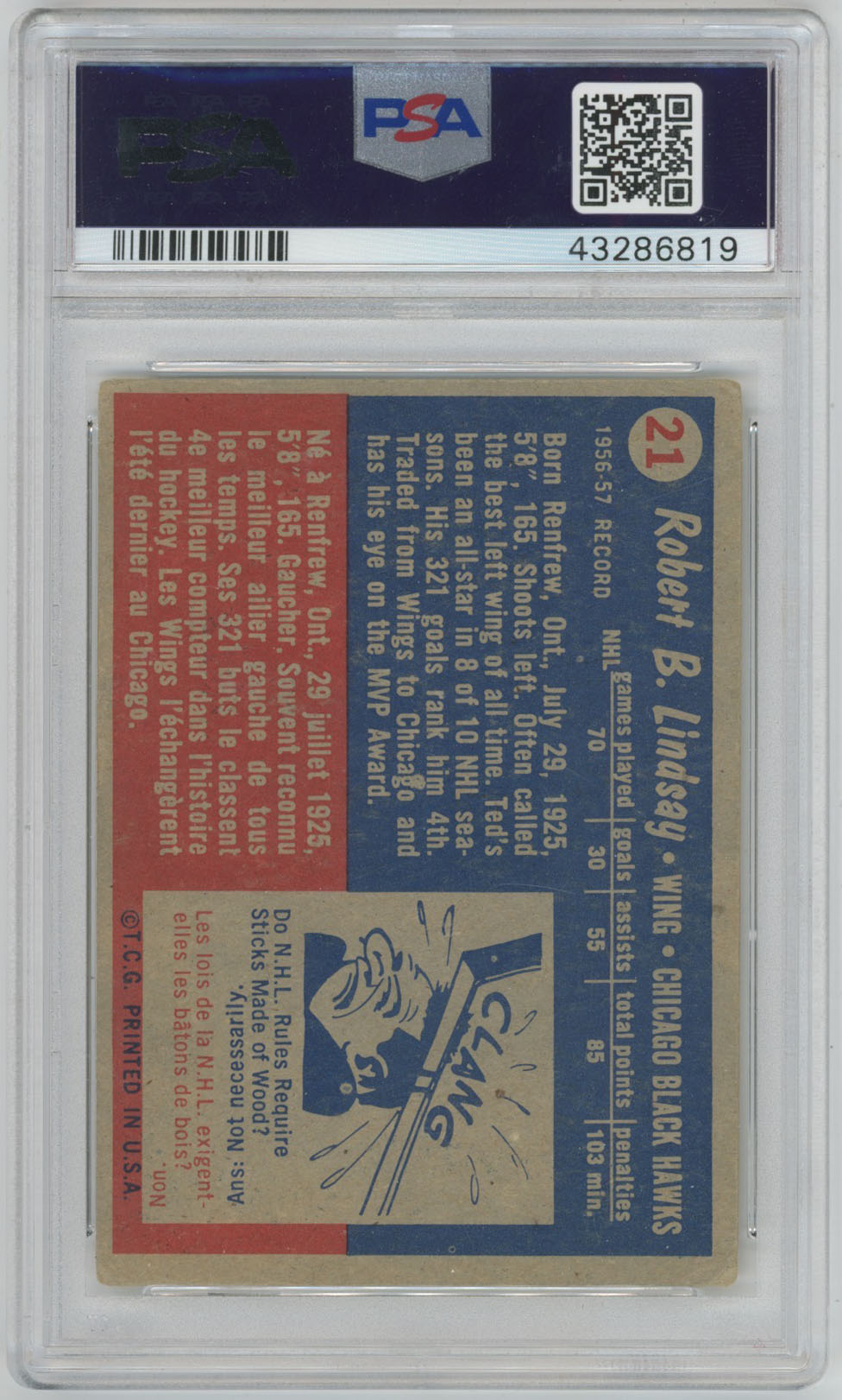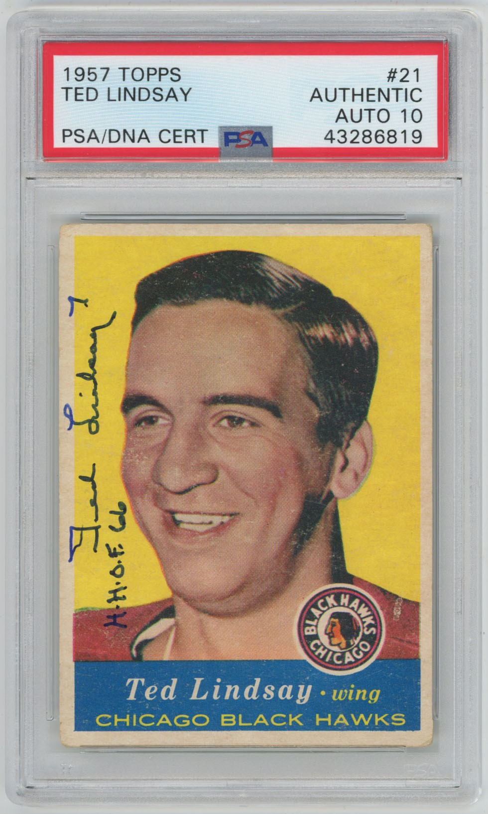 1957 Topps 21 Ted Lindsay Signed Card PSA 10 (auto)