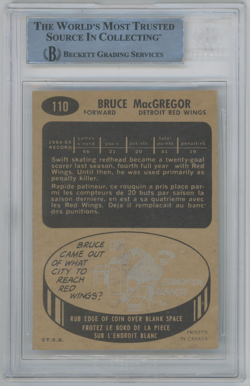 1965 Topps 110 Bruce MacGregor Signed Card Beckett Slabbed Slabbed