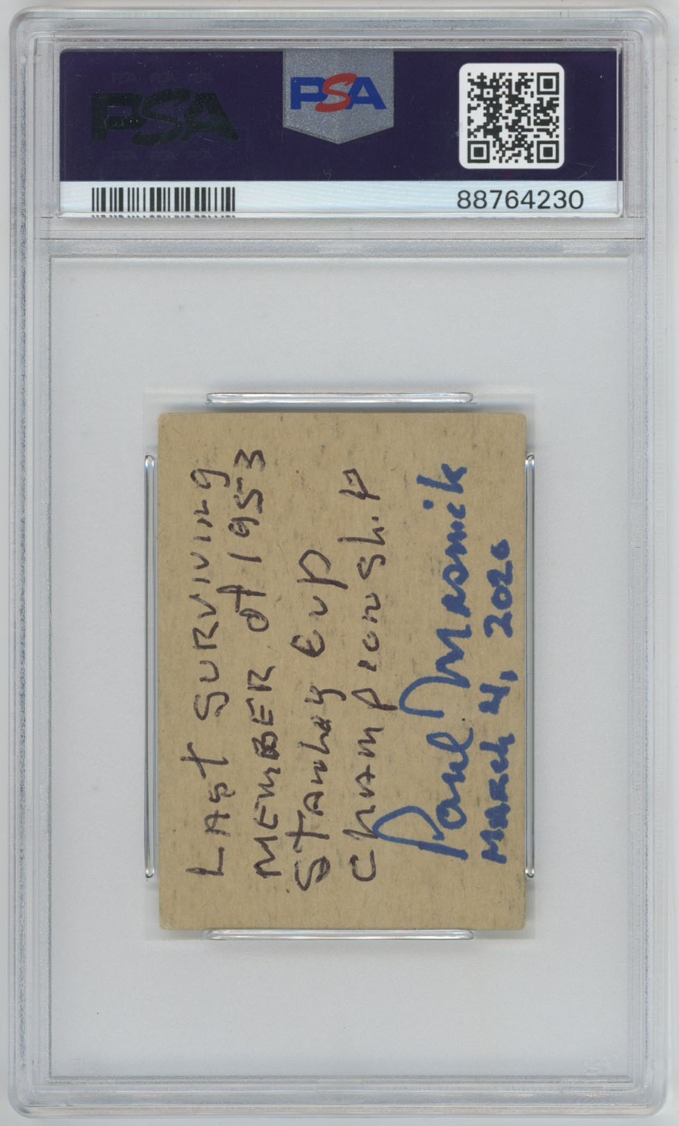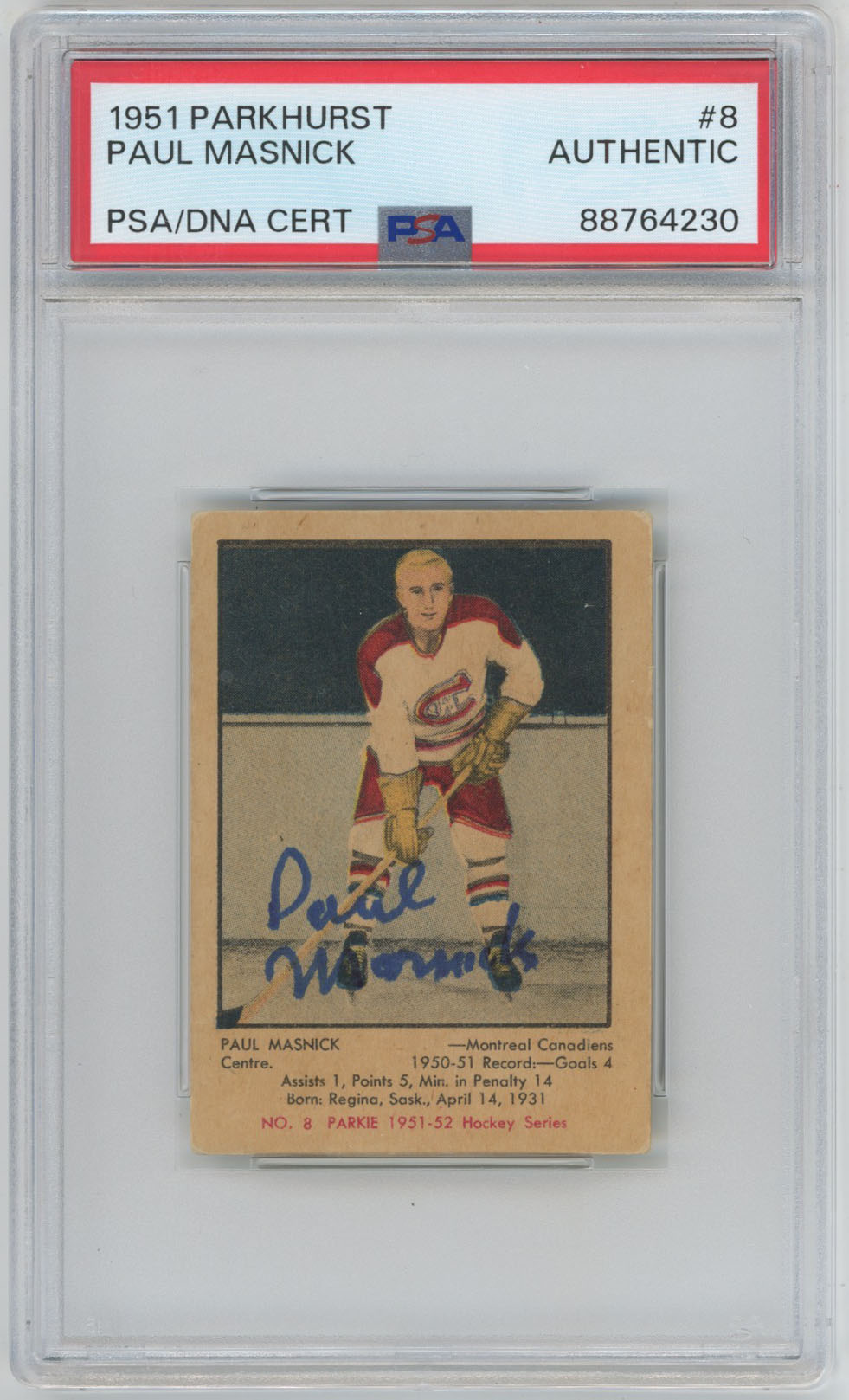 1951 Parkhurst 8 Paul Masnick Signed Twice Ins Rookie Card