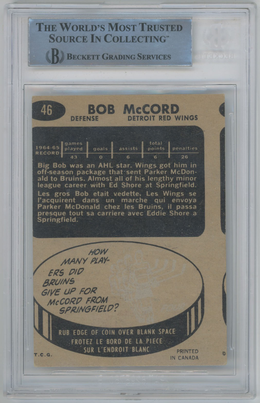 1965 Topps 46 Bob McCord Signed Card Beckett Slabbed Slabbed