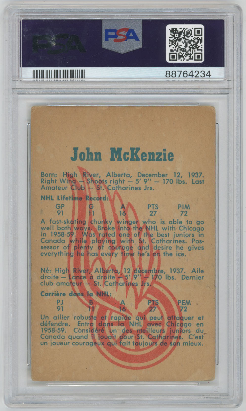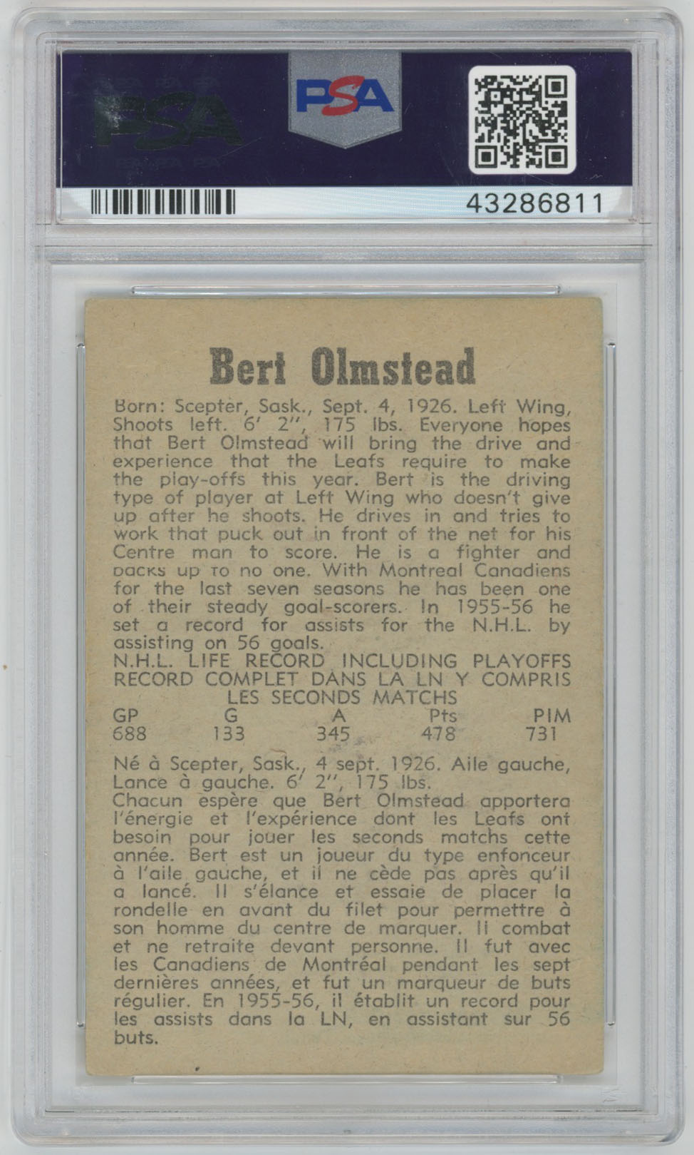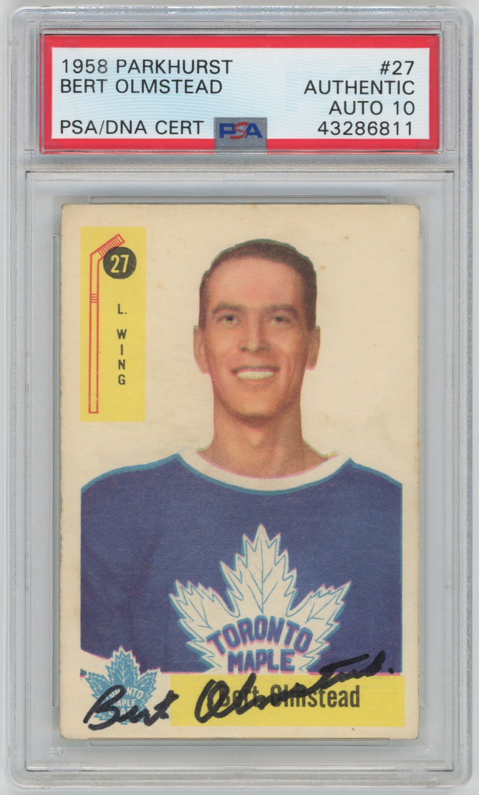 1958 Parkhurst 27 Bert Olmstead Signed Card PSA 10 (auto)