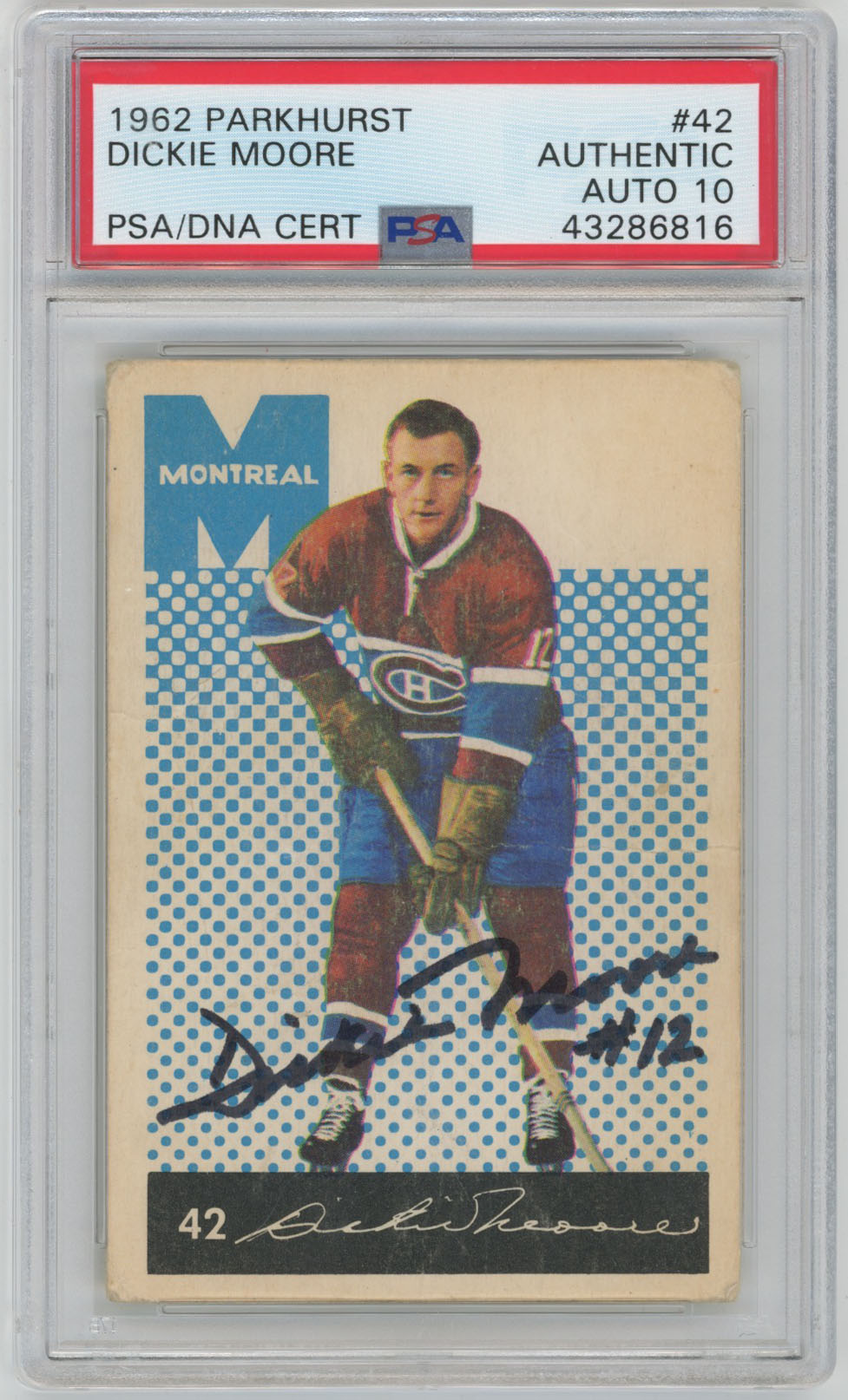 1955 Parkhurst 38 Dickie Moore Signed Card PSA 10 (auto)