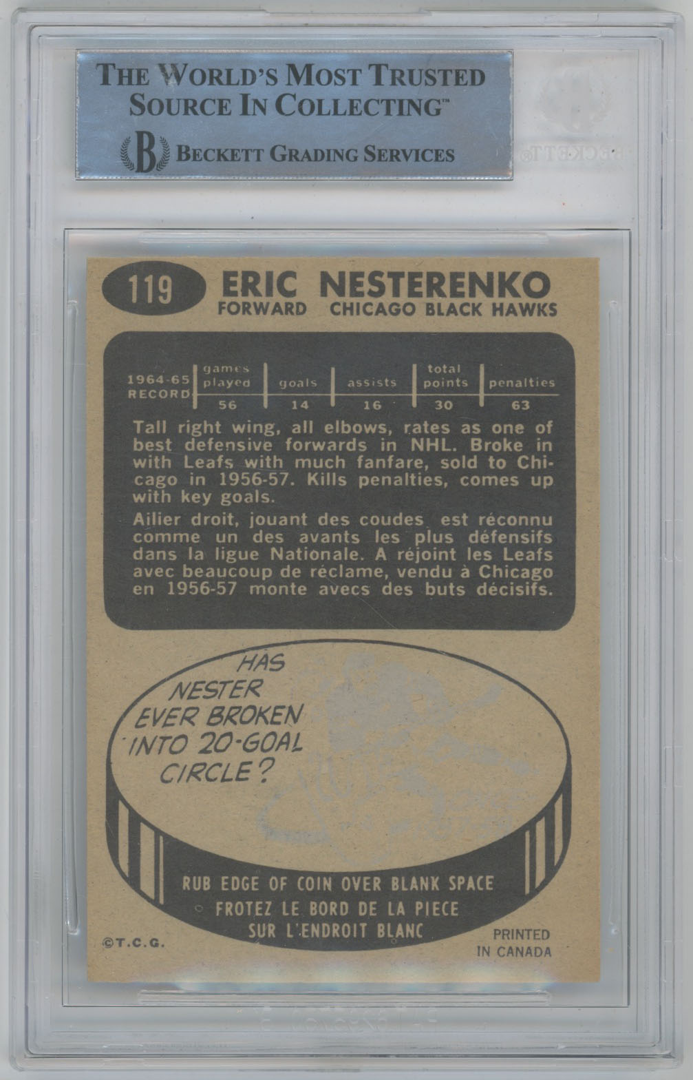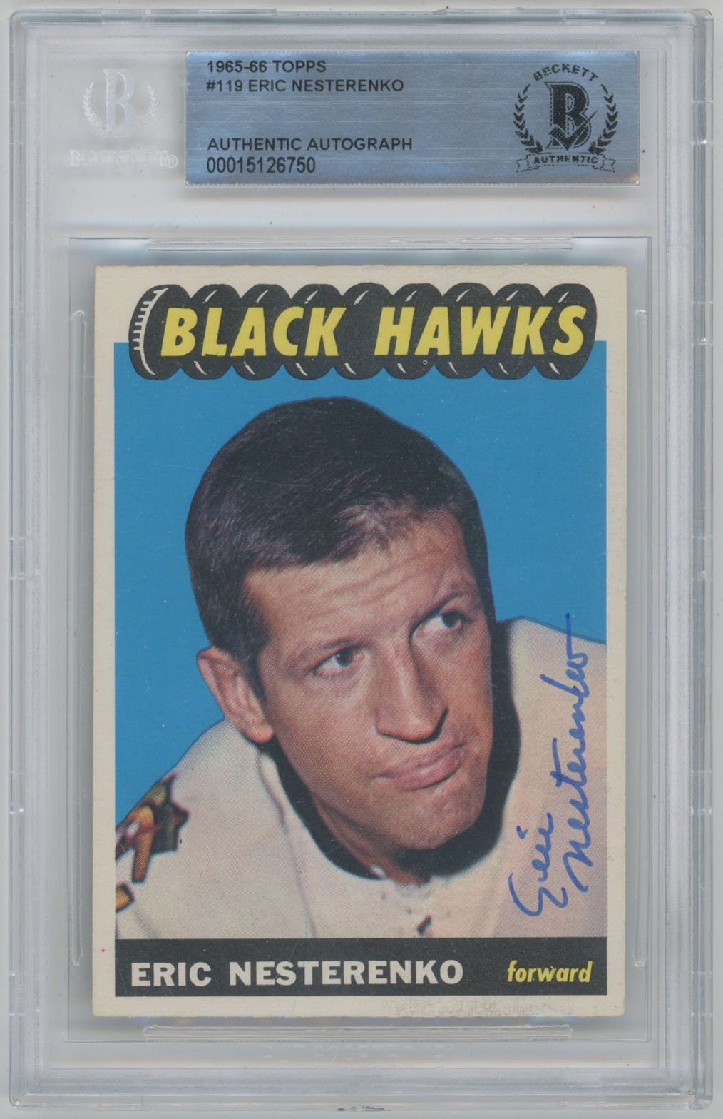 1965 Topps 119 Eric Nesterenko Signed Card Beckett Slabbed Slabbed