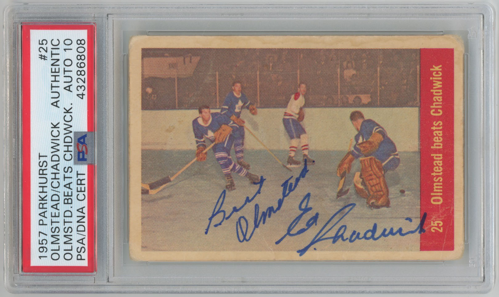 1957 Parkhurst 25 Bert Olmstead & Ed Chadwick Signed Card