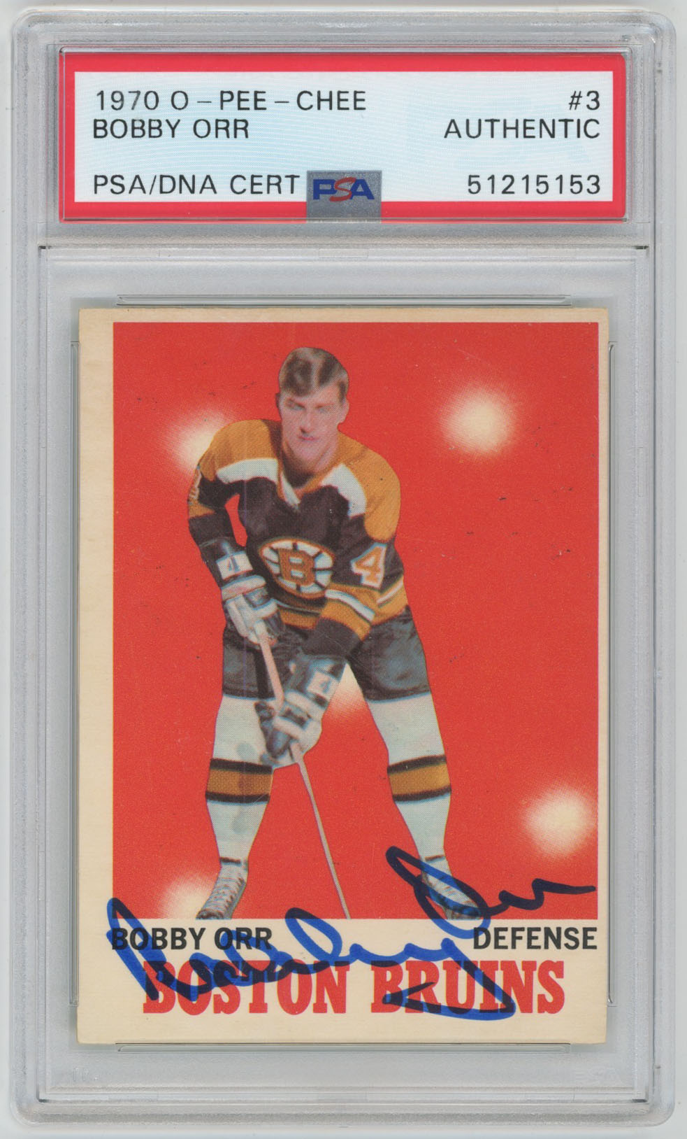 1970 O-Pee-Chee 3 Bobby Orr Signed Card OPC PSA Slabbed