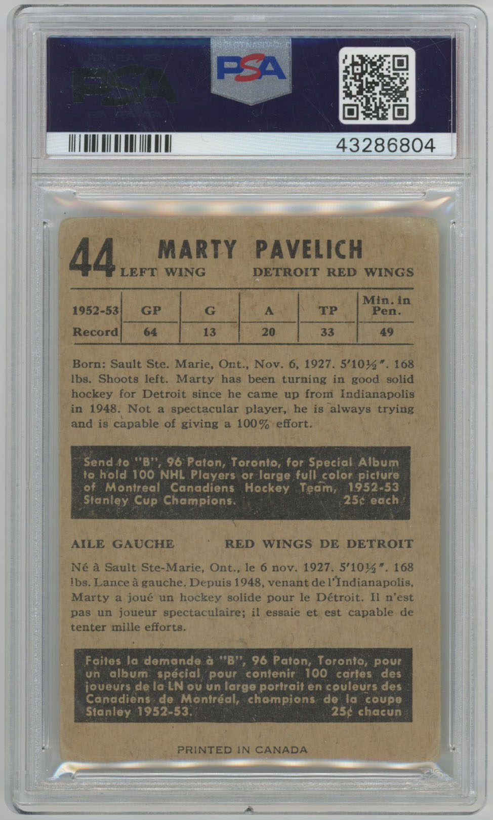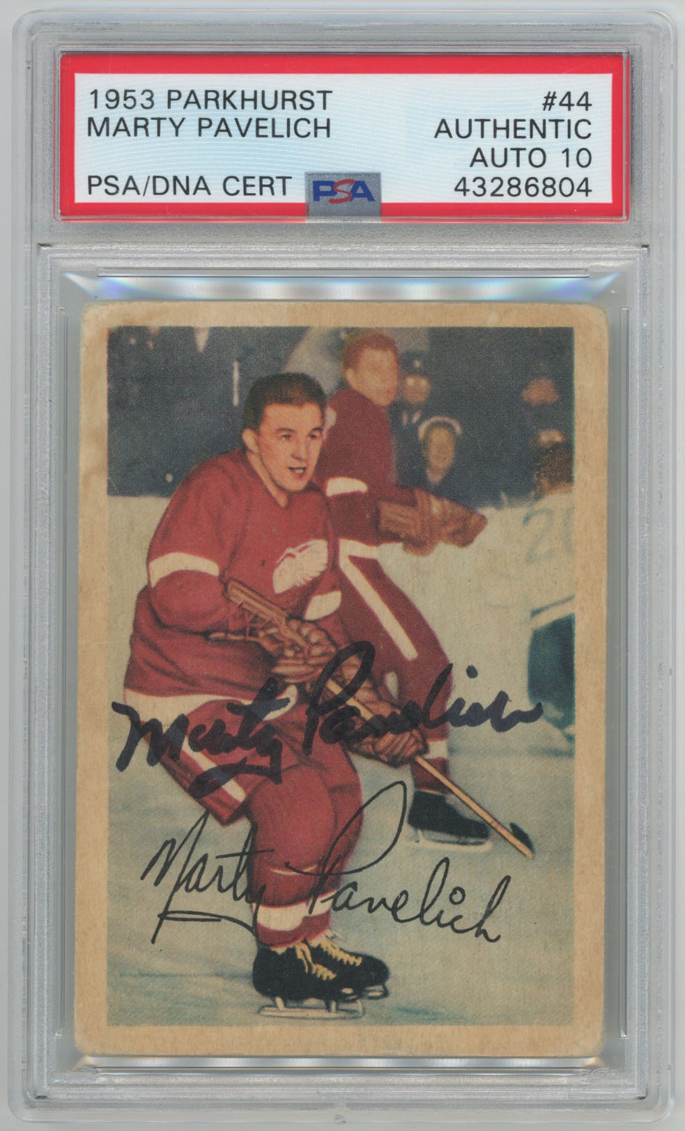 1953 Parkhurst 44 Marty Pavelich Signed Card PSA 10 (auto)