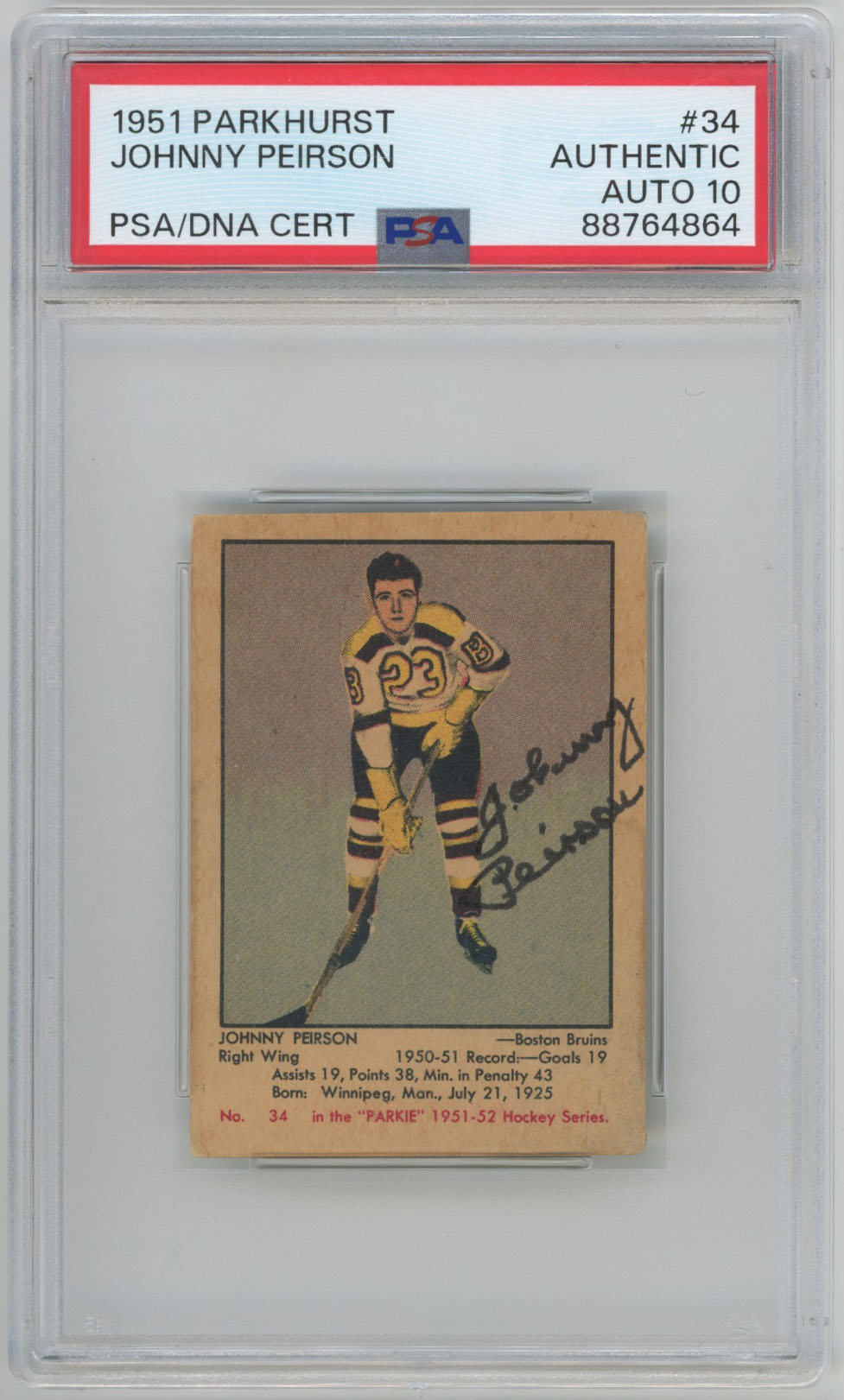 1951 Parkhurst 34 Johnny Peirson Signed Rookie Card Bruins RC