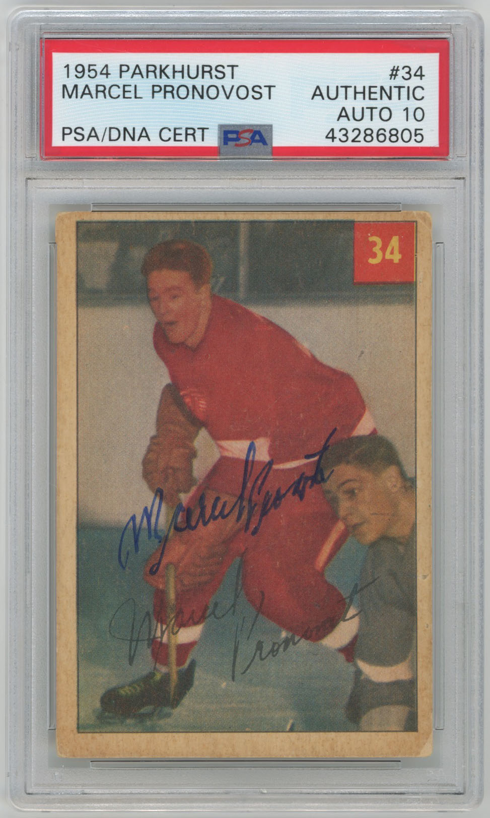 1954 Parkhurst 34 Marcel Pronovost Signed Card PSA 10 (auto)