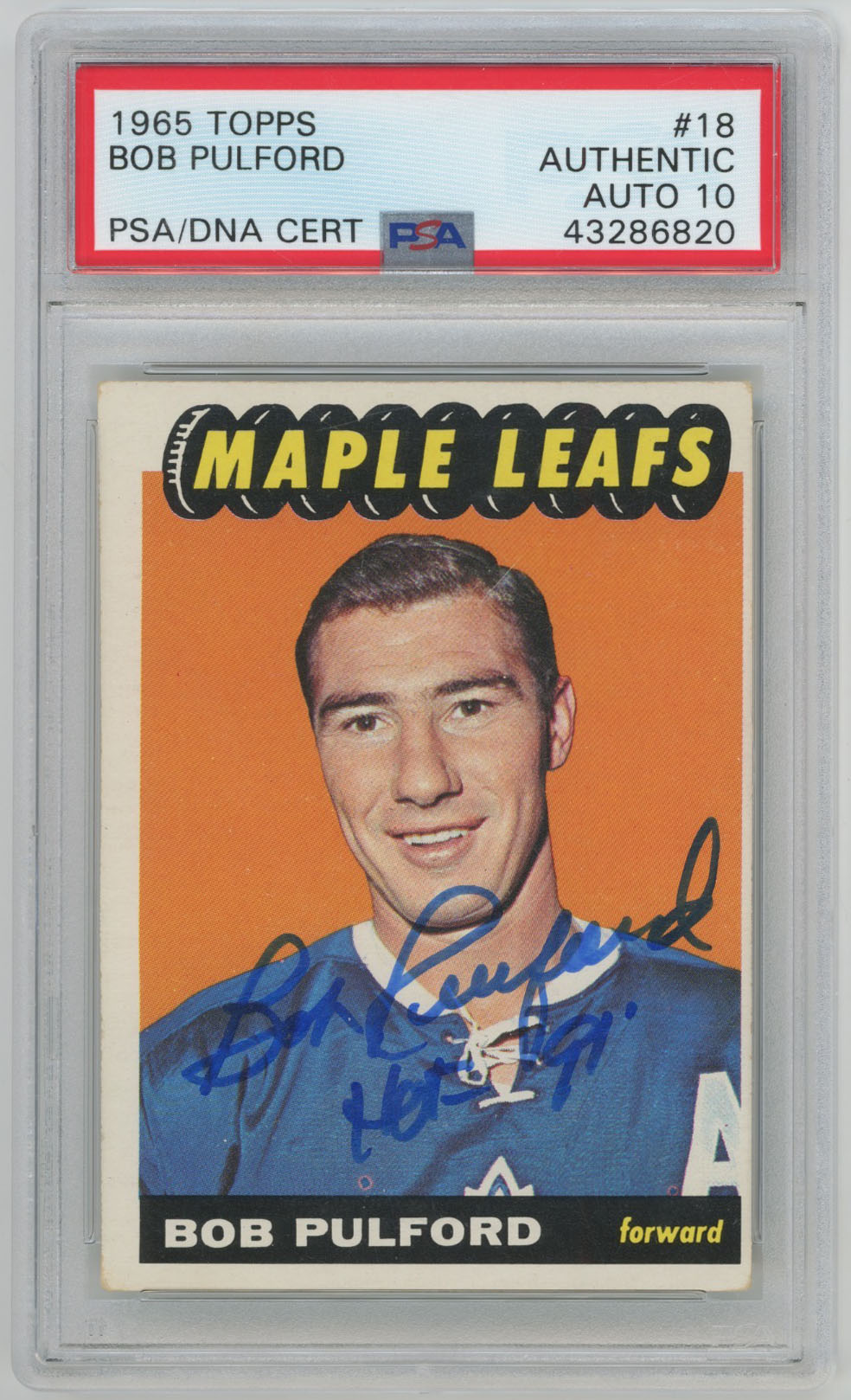 1965 Topps 18 Bob Pulford Signed Card PSA 10 (auto)