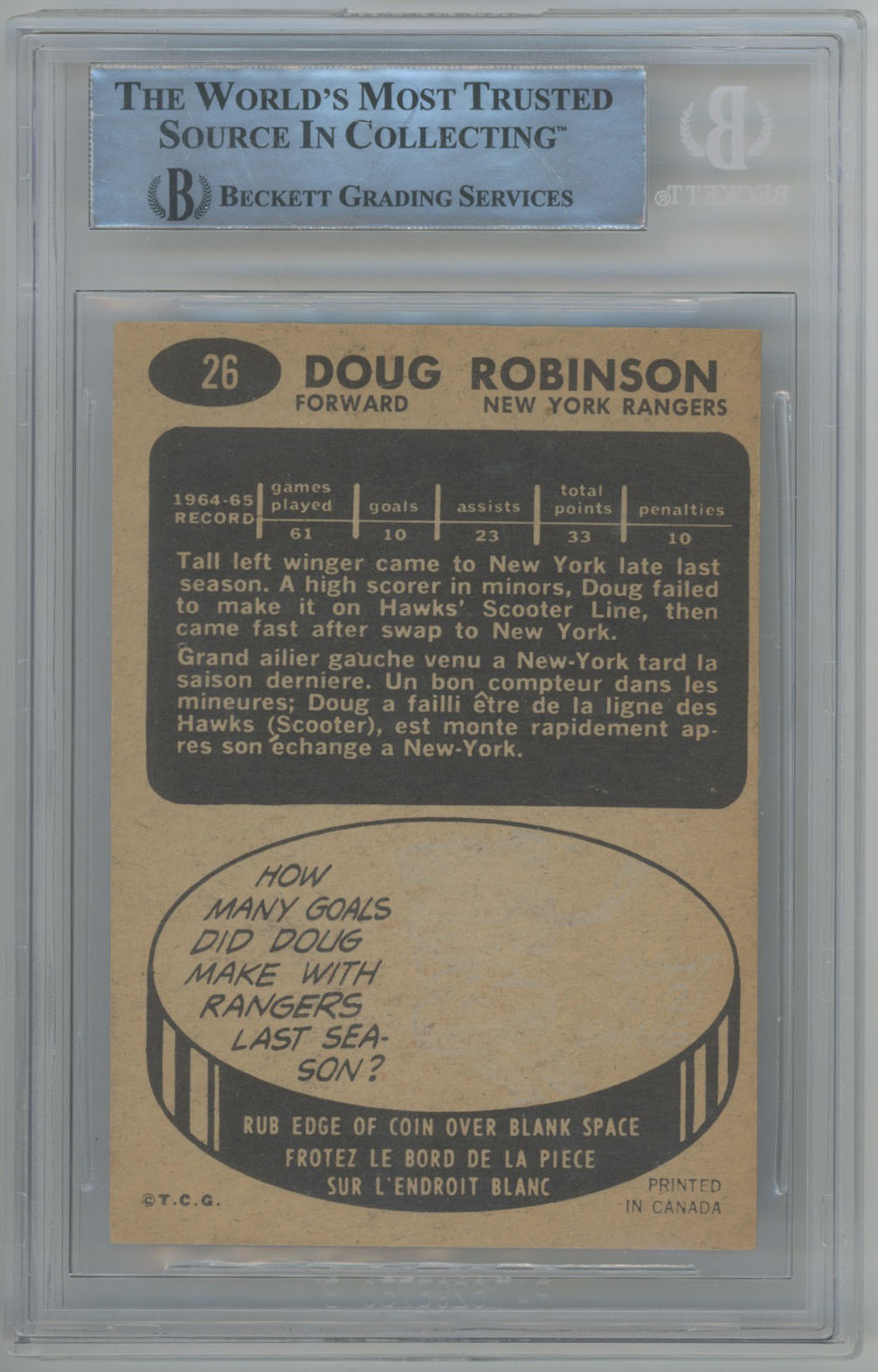 1965 Topps 26 Doug Robinson Signed Card Beckett Slabbed Slabbed