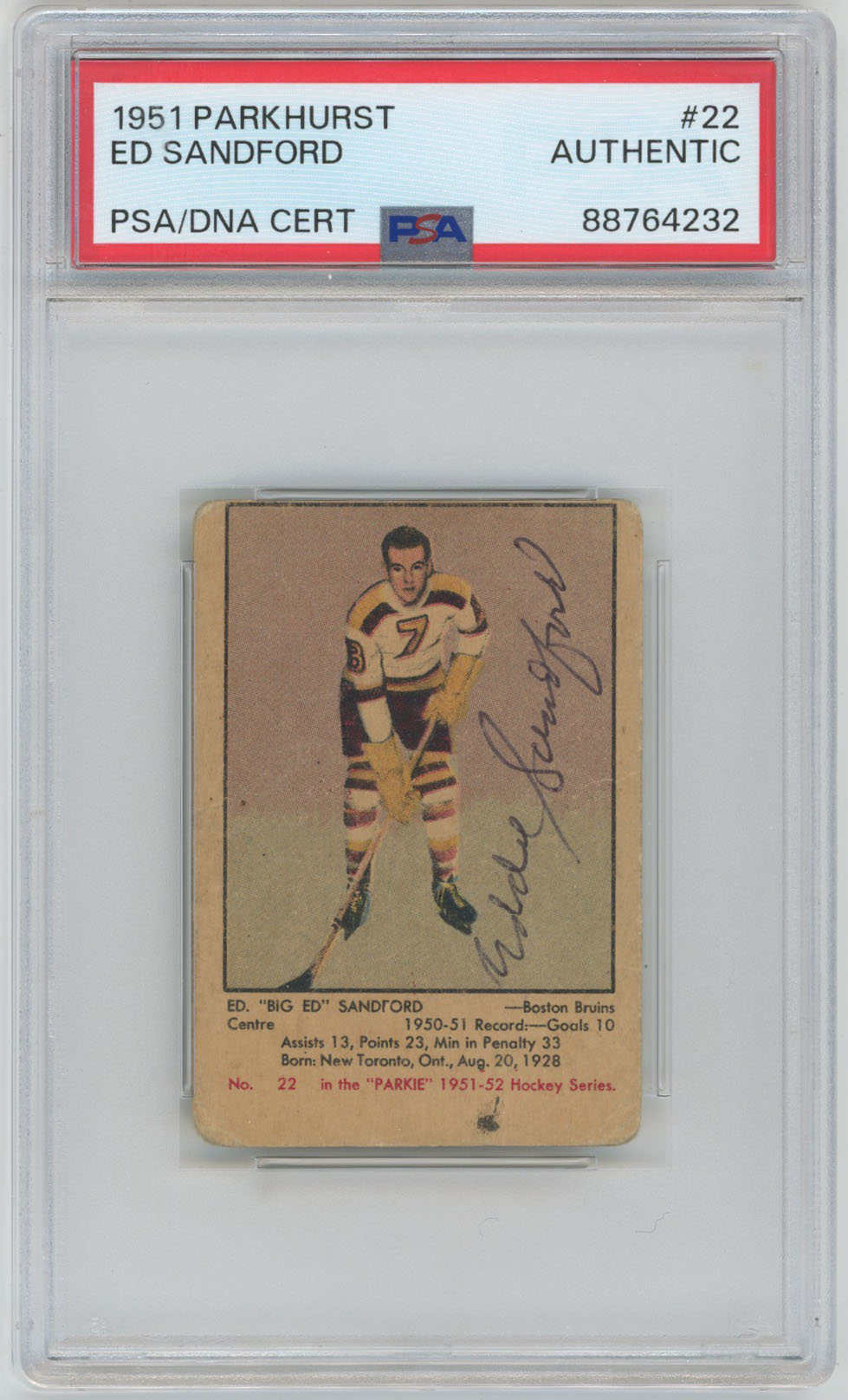 1951 Parkhurst 22 Ed Sandford Signed Rookie Card Bruins RC