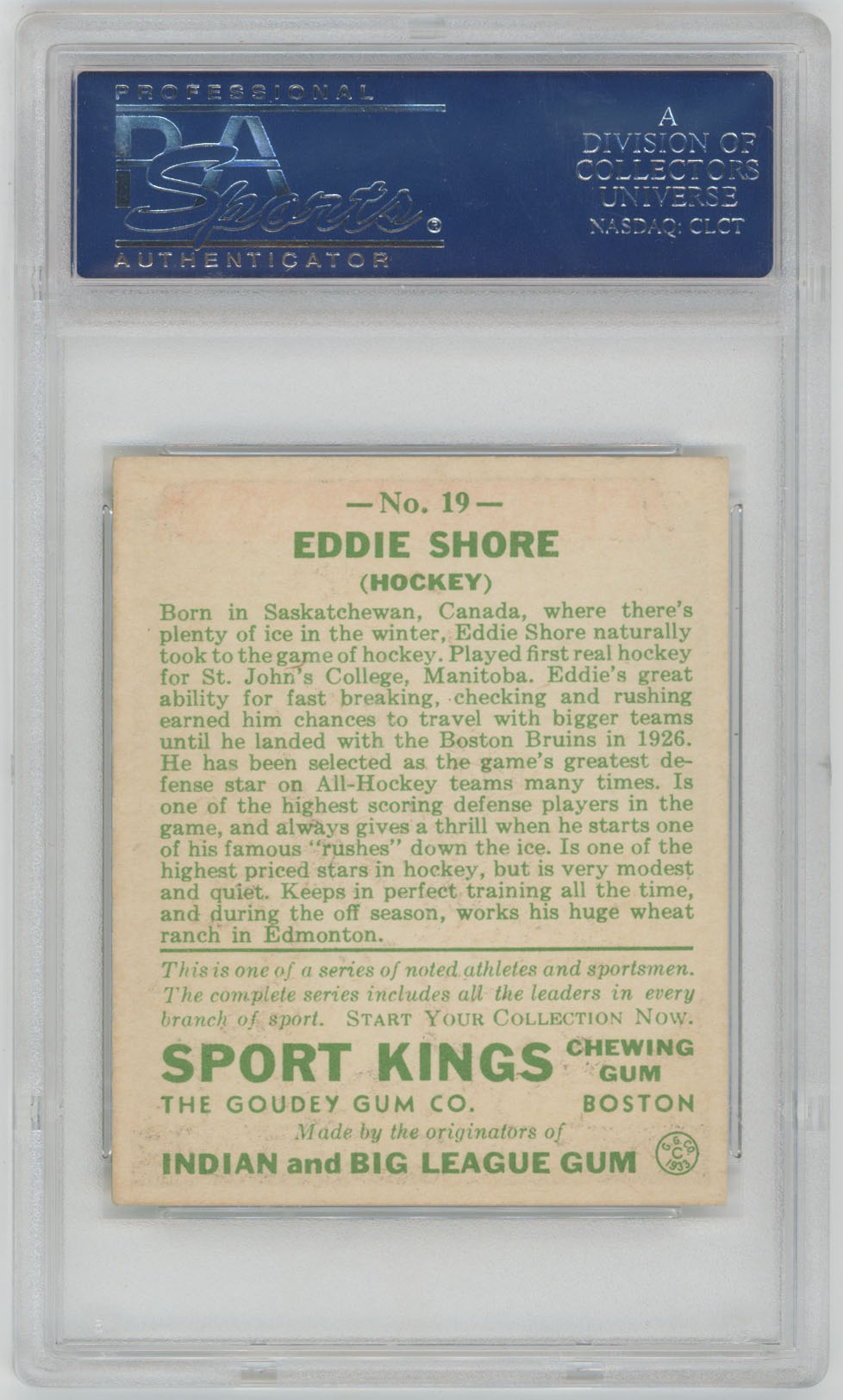1933 Sport King 19 Eddie Shore PSA 2