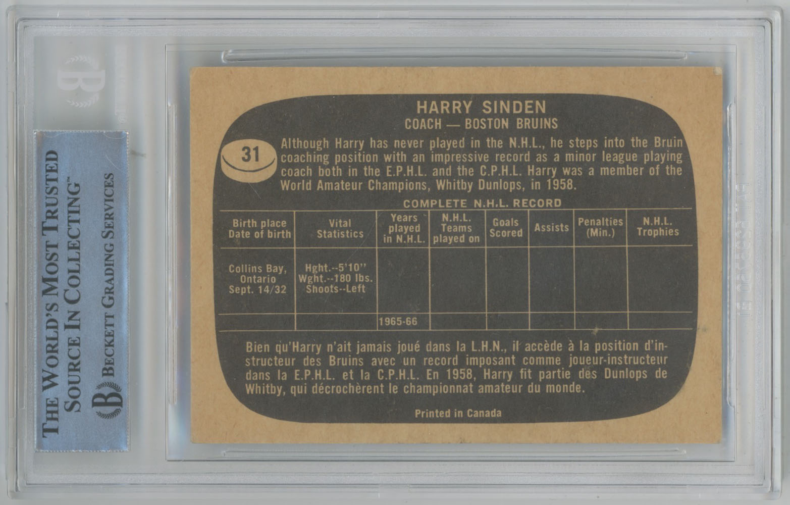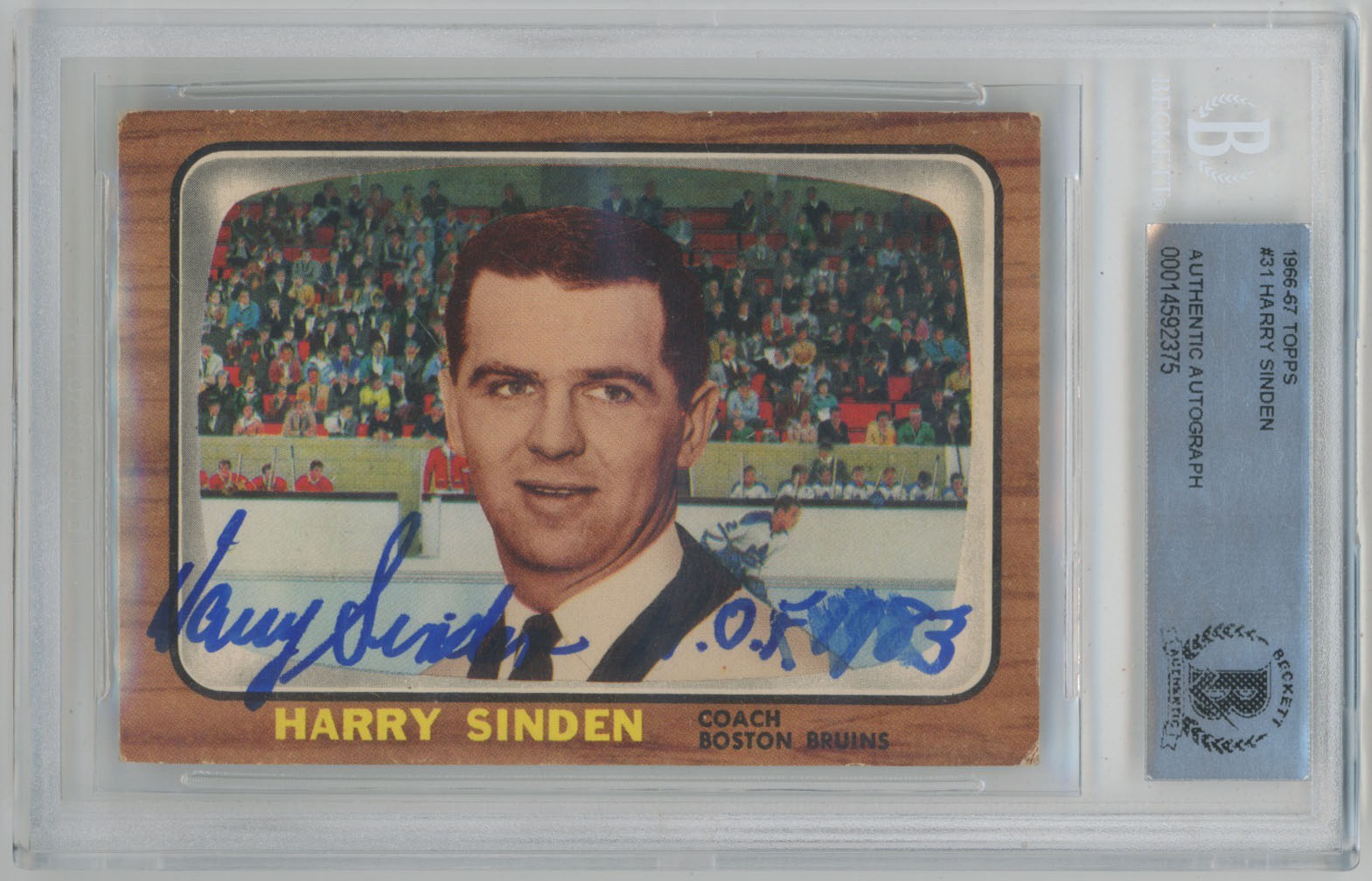 1966 Topps 31 Harry Sinden Signed Rookie Card Beckett Slabbed
