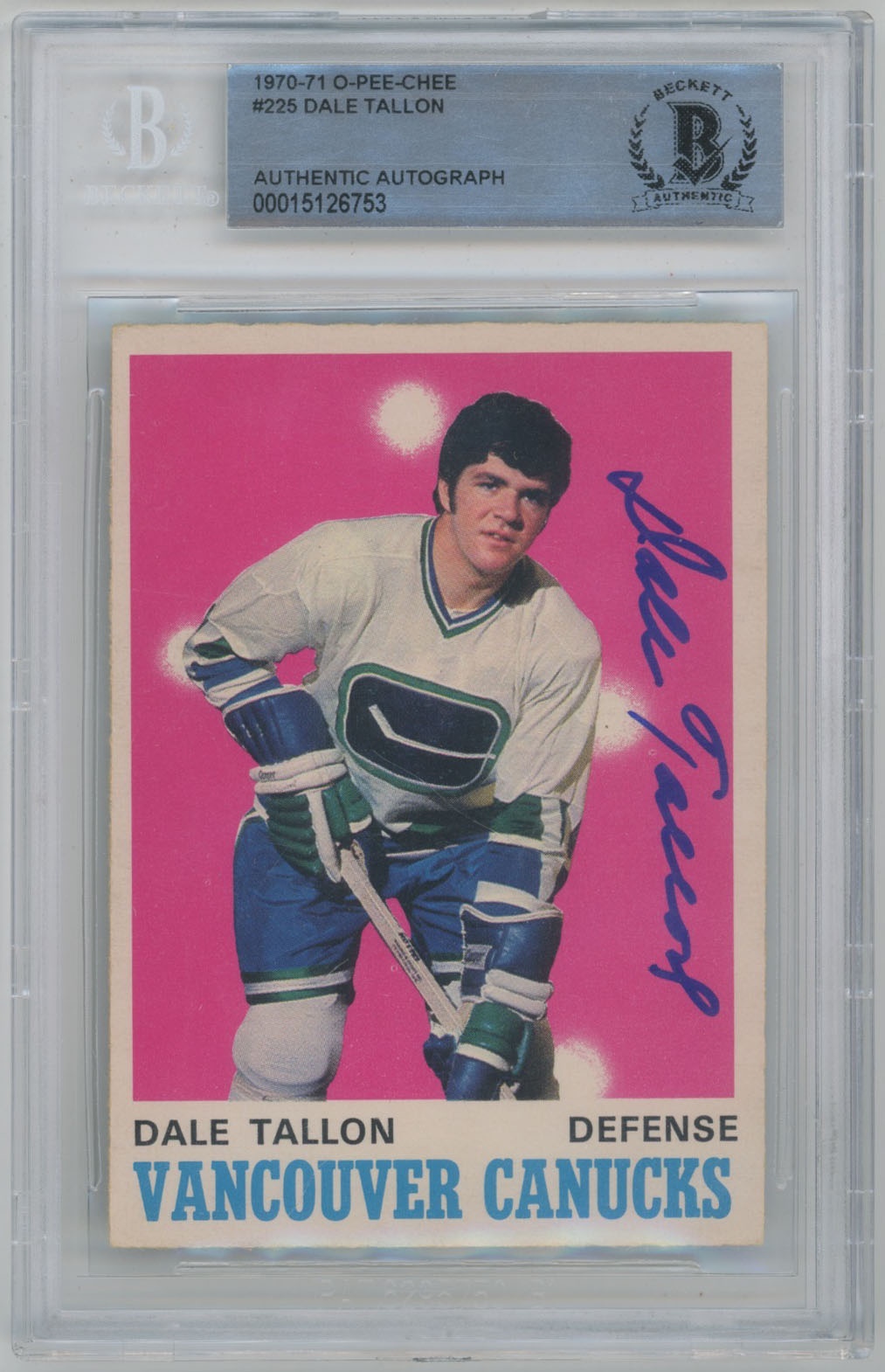 1970 O-Pee-Chee 225 Dale Tallon Signed Rookie Card Canucks Auto