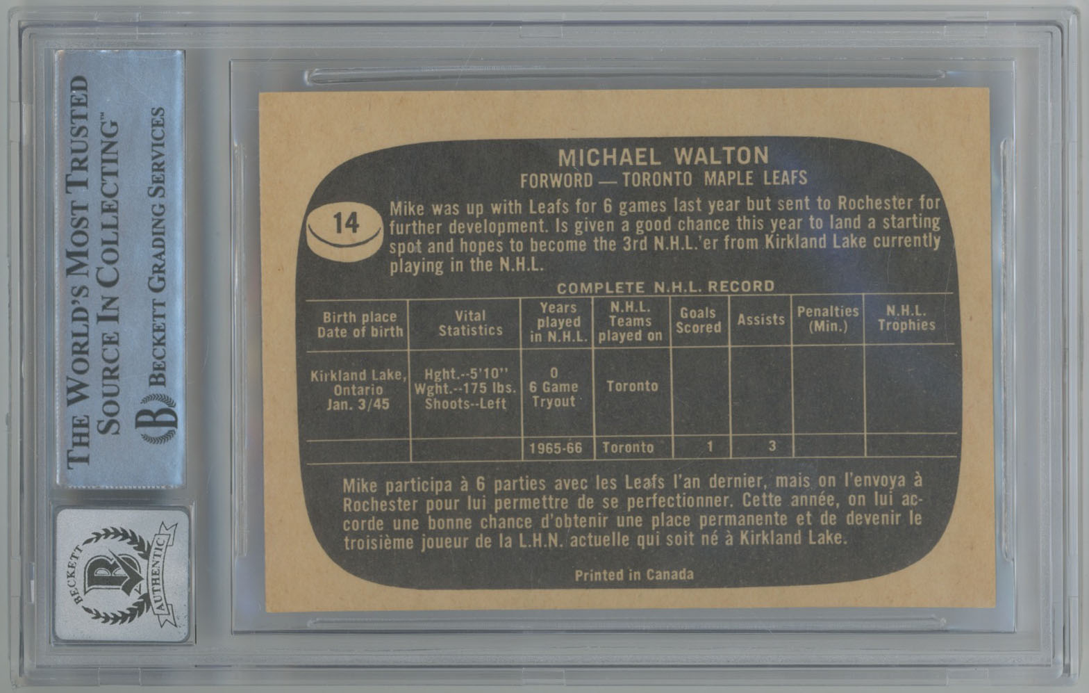 1966 Topps 14 Mike Walton Signed Card Beckett Slabbed Slabbed