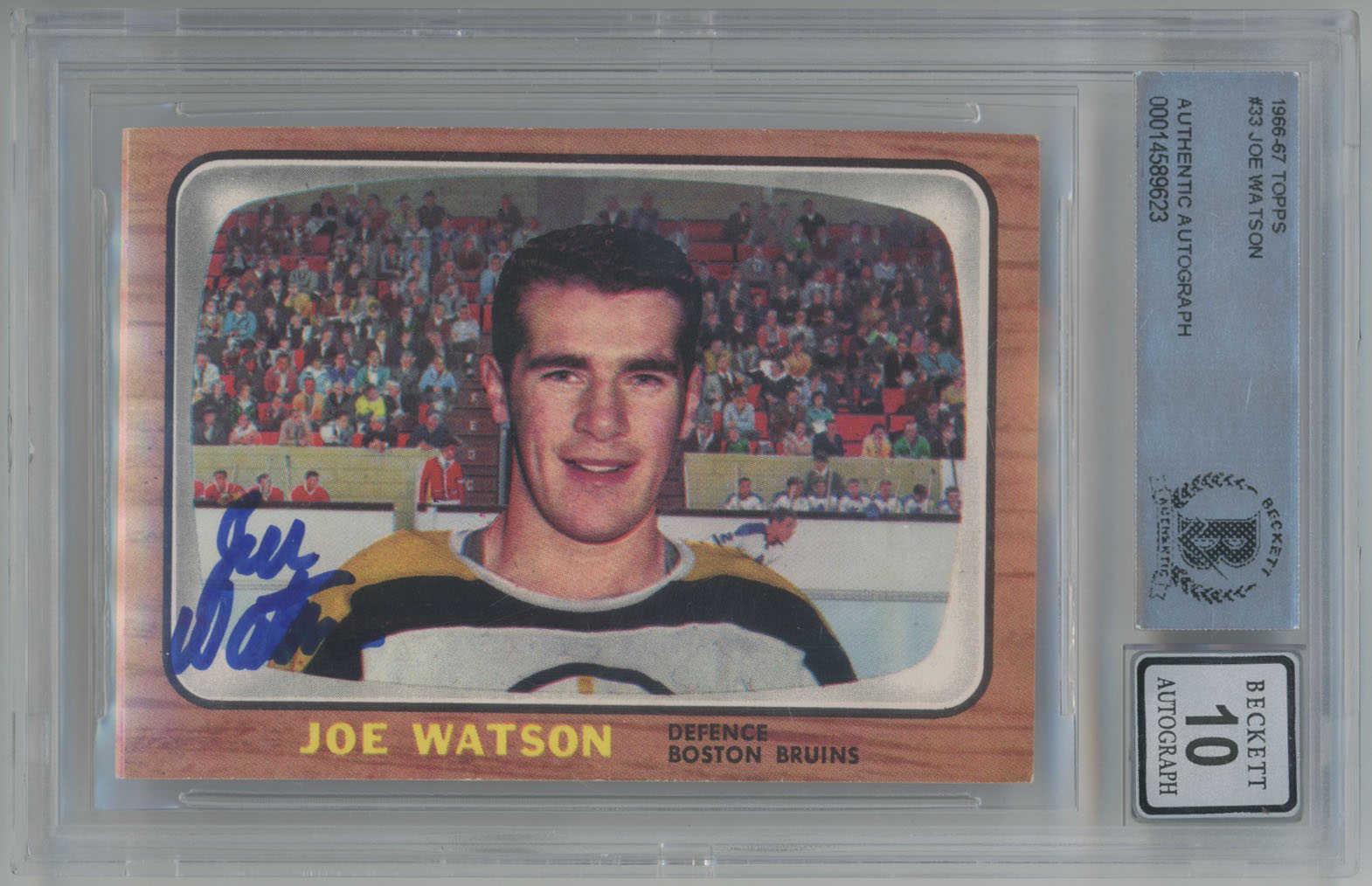 1966 Topps 33 Joe Watson Signed Rookie Card Beckett Bruins Beckett 10 (auto)