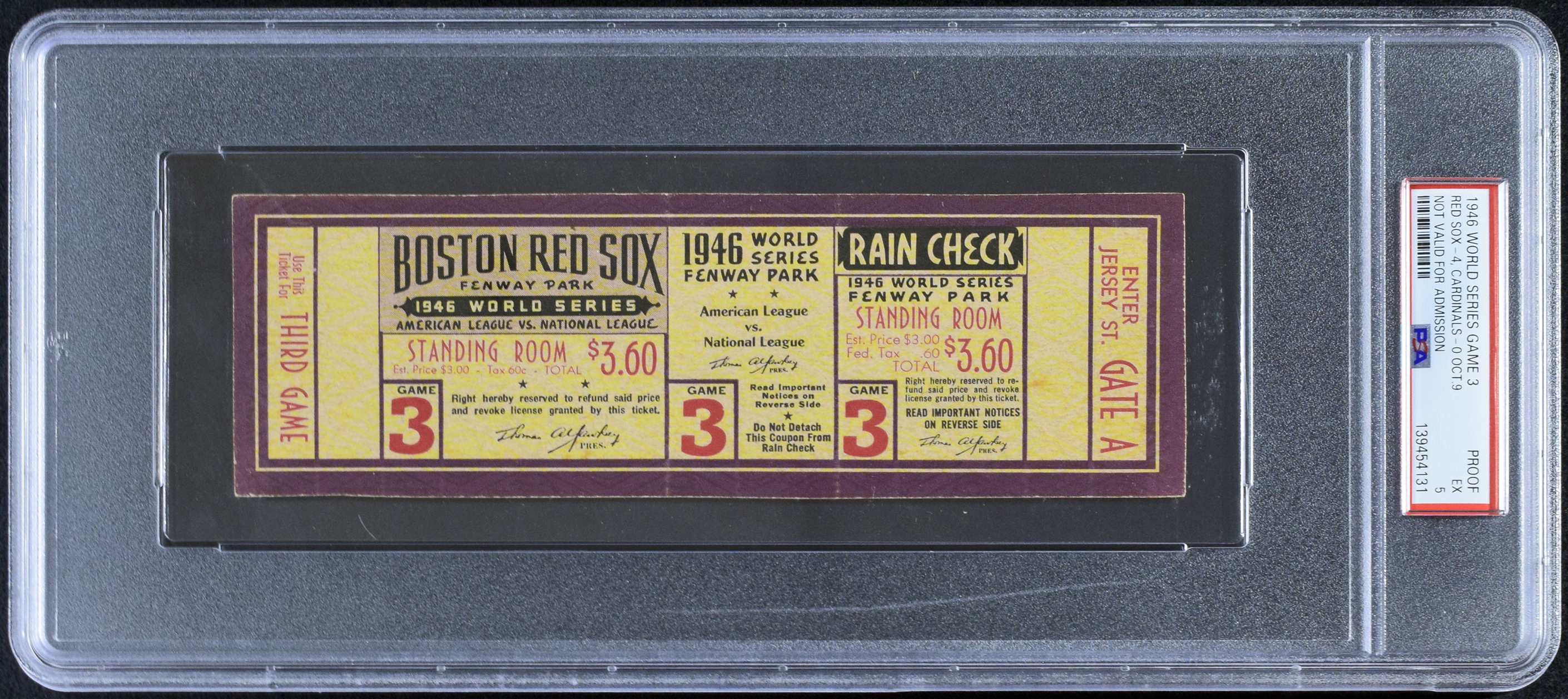 1946 Ticket World Series Game 3 Full Standing Room Proof Ticket PSA 5