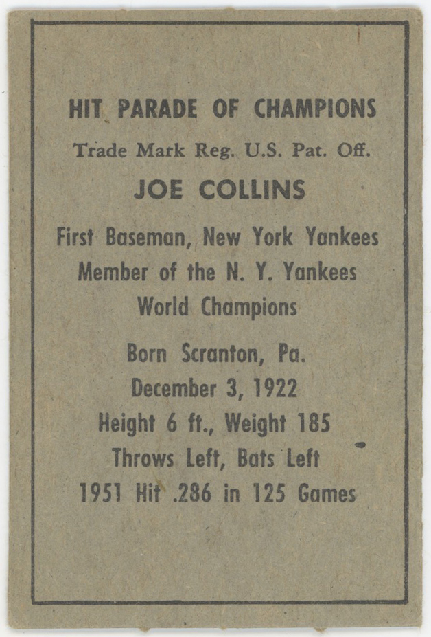 1952 Berk Ross 10 Joe Collins VG-Ex/Ex