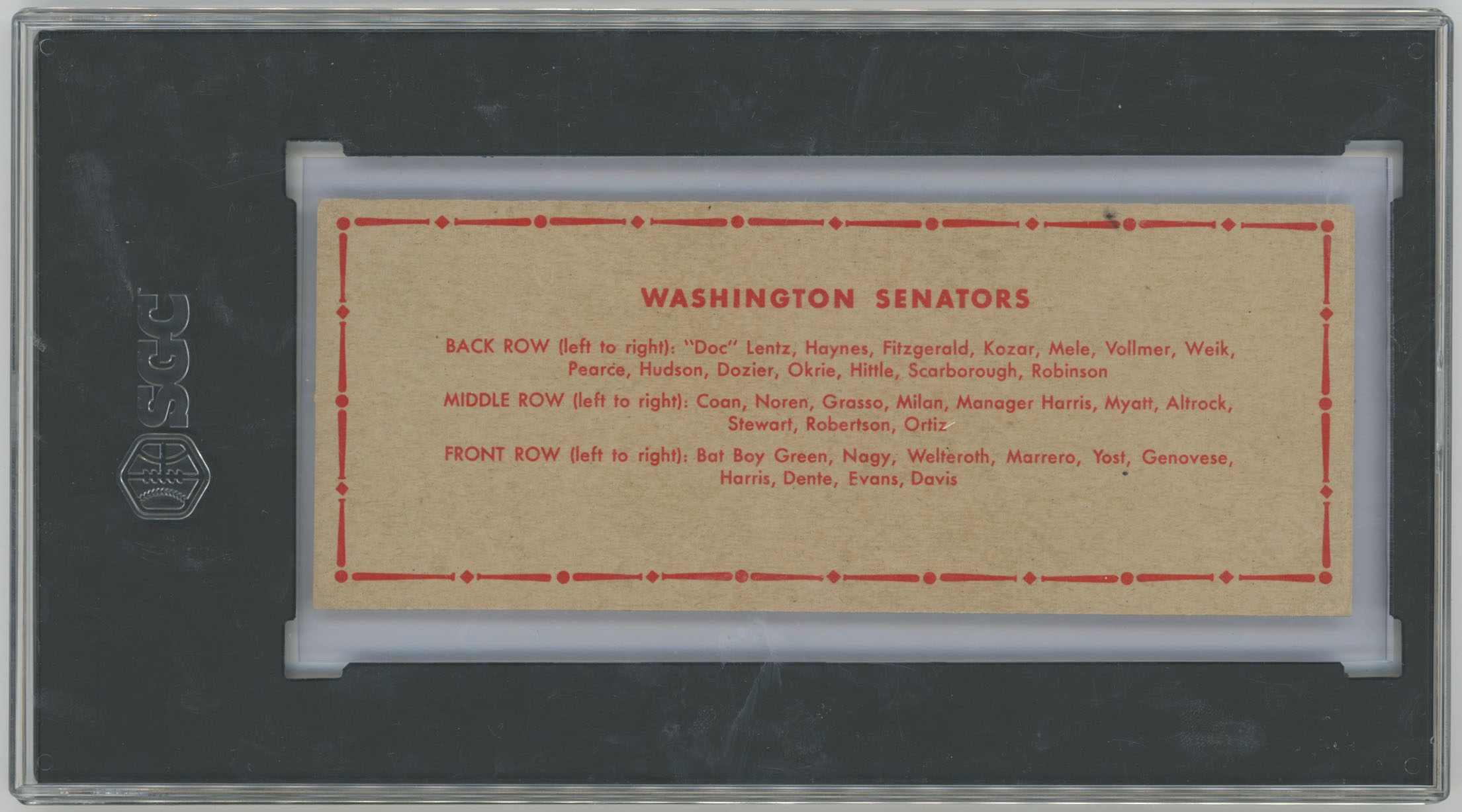 1951 Topps Team Cards Washington Senators (dated) SGC 4