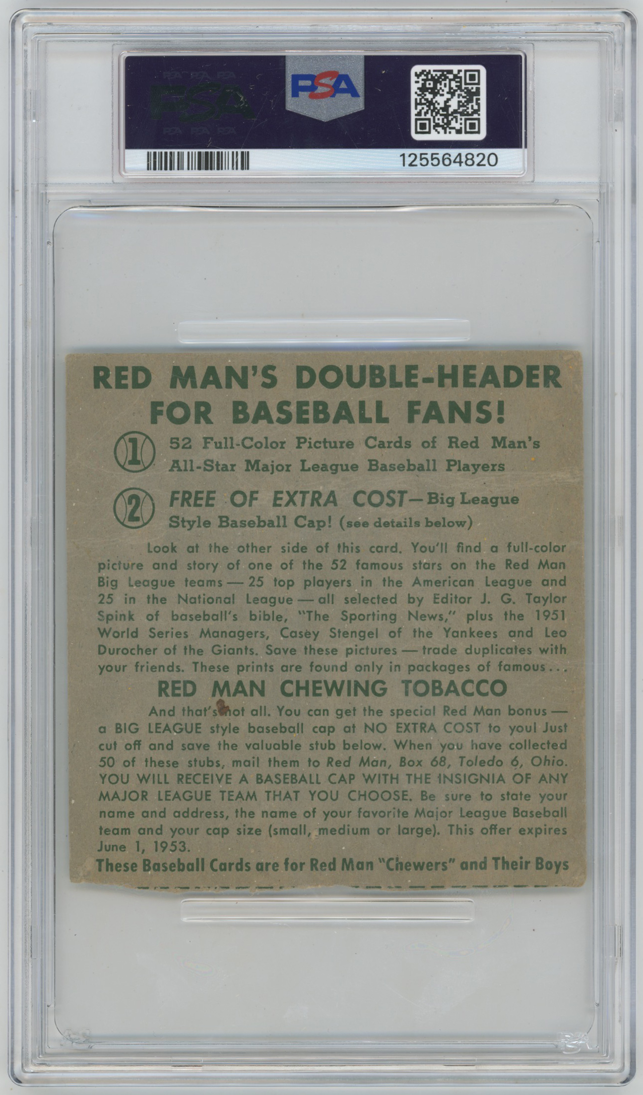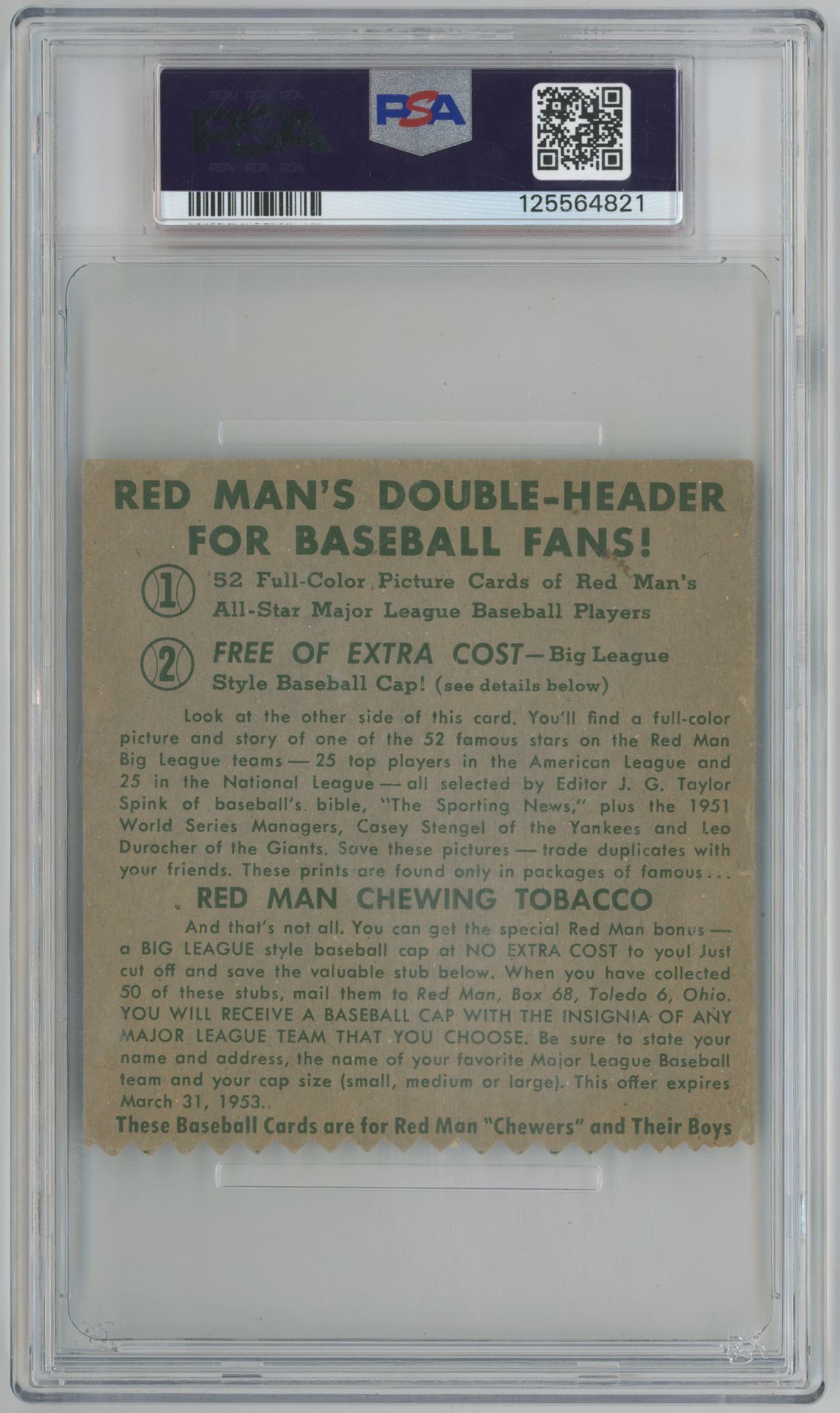 1952 Red Man no tab 23.1 Ted Williams PSA A