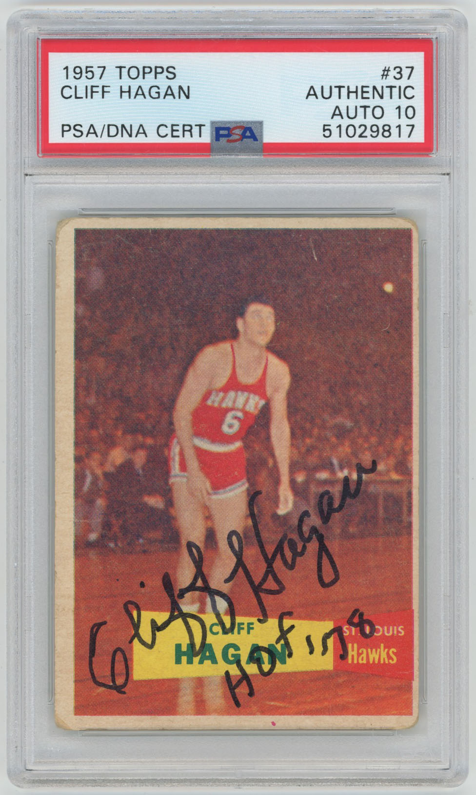 1957 Topps 37 Cliff Hagan Signed Rookie Card PSA 10 (auto)