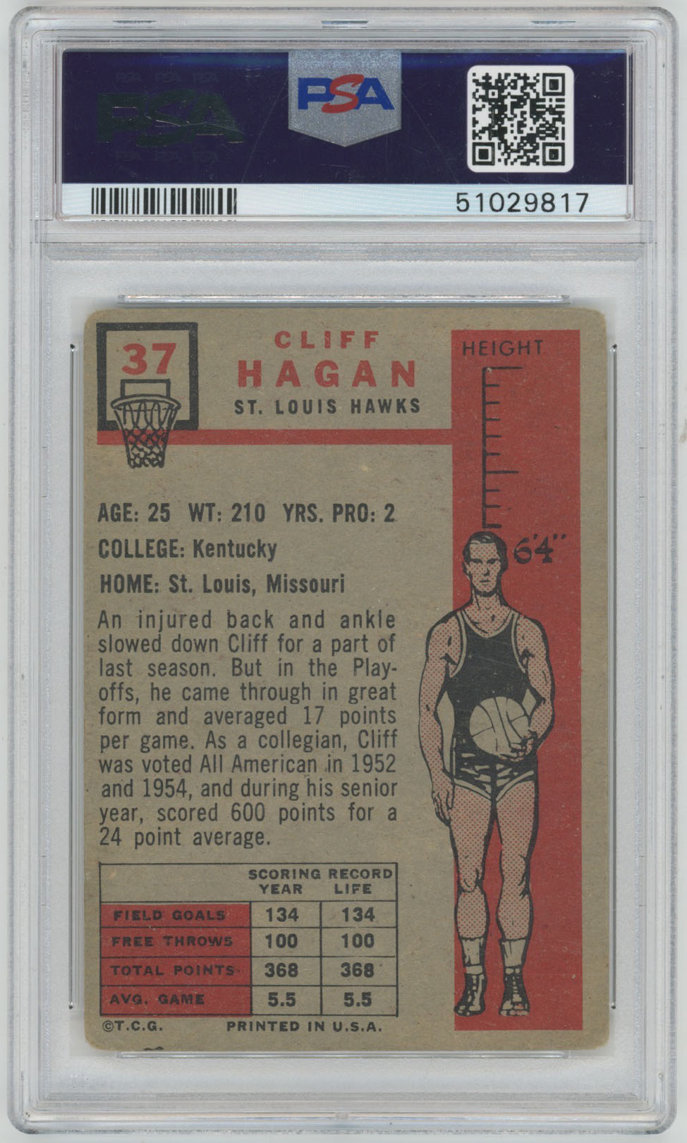 1961 Hawks Essex Meats Clyde Lovellette PSA 4