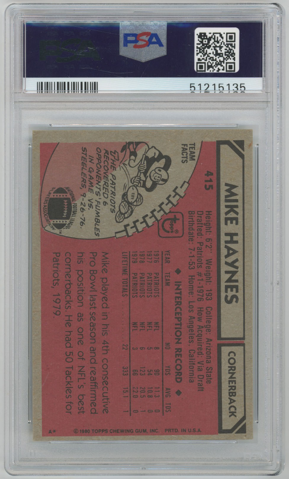 1980 Topps 415 Mike Haynes Signed Card PSA Slabbed New