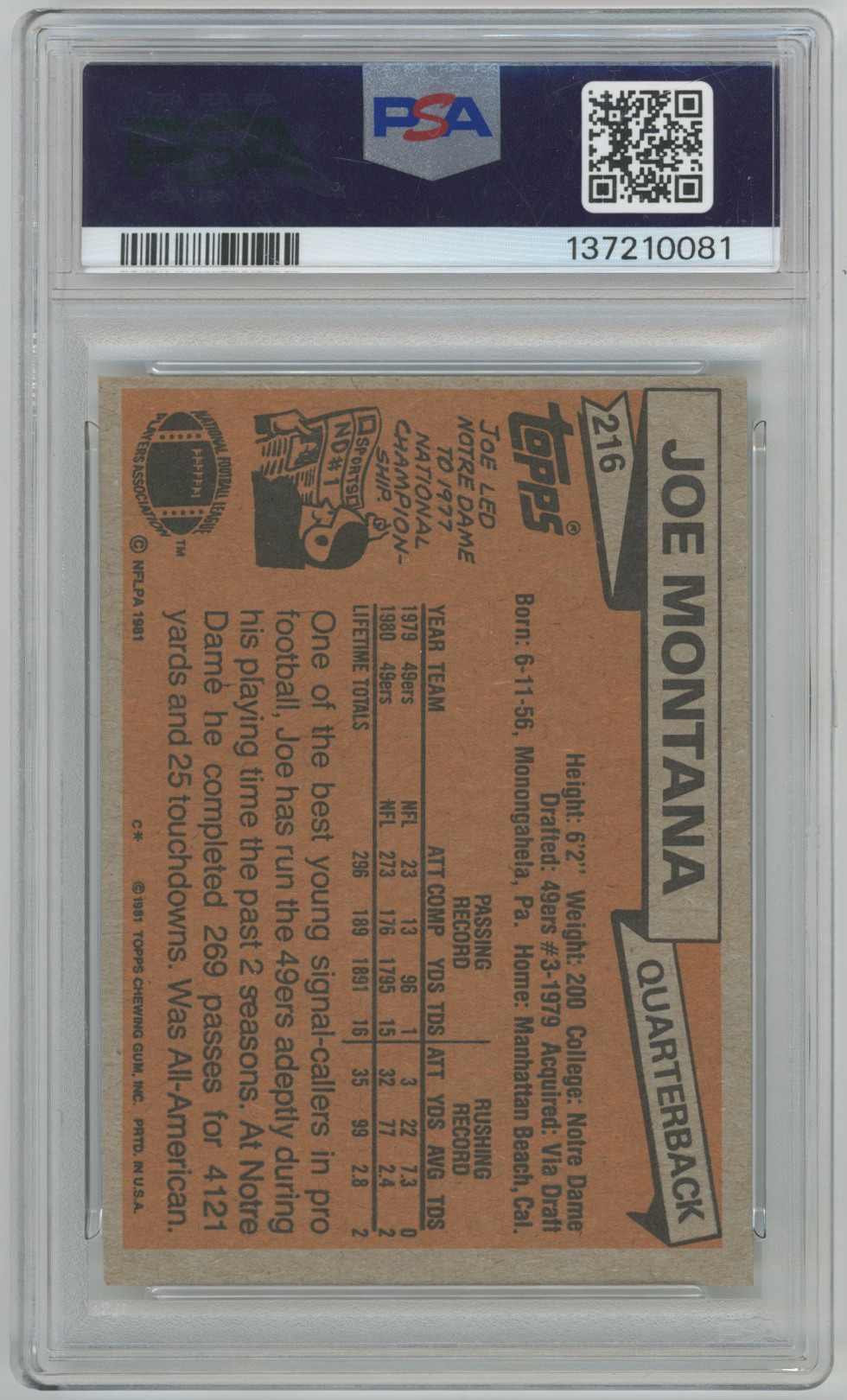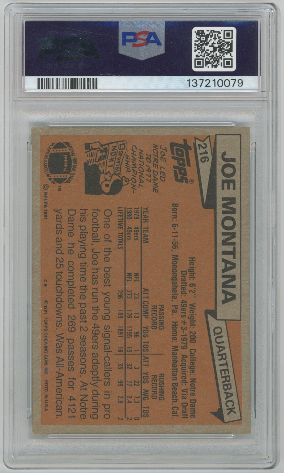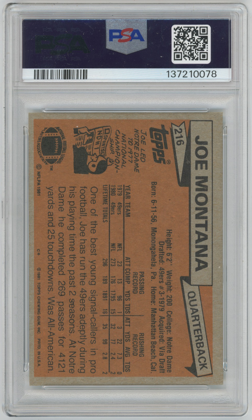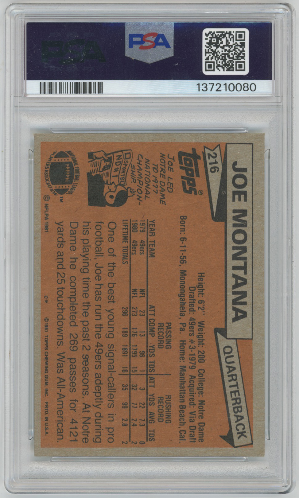 1981 Topps 216 Montana RC PSA 7