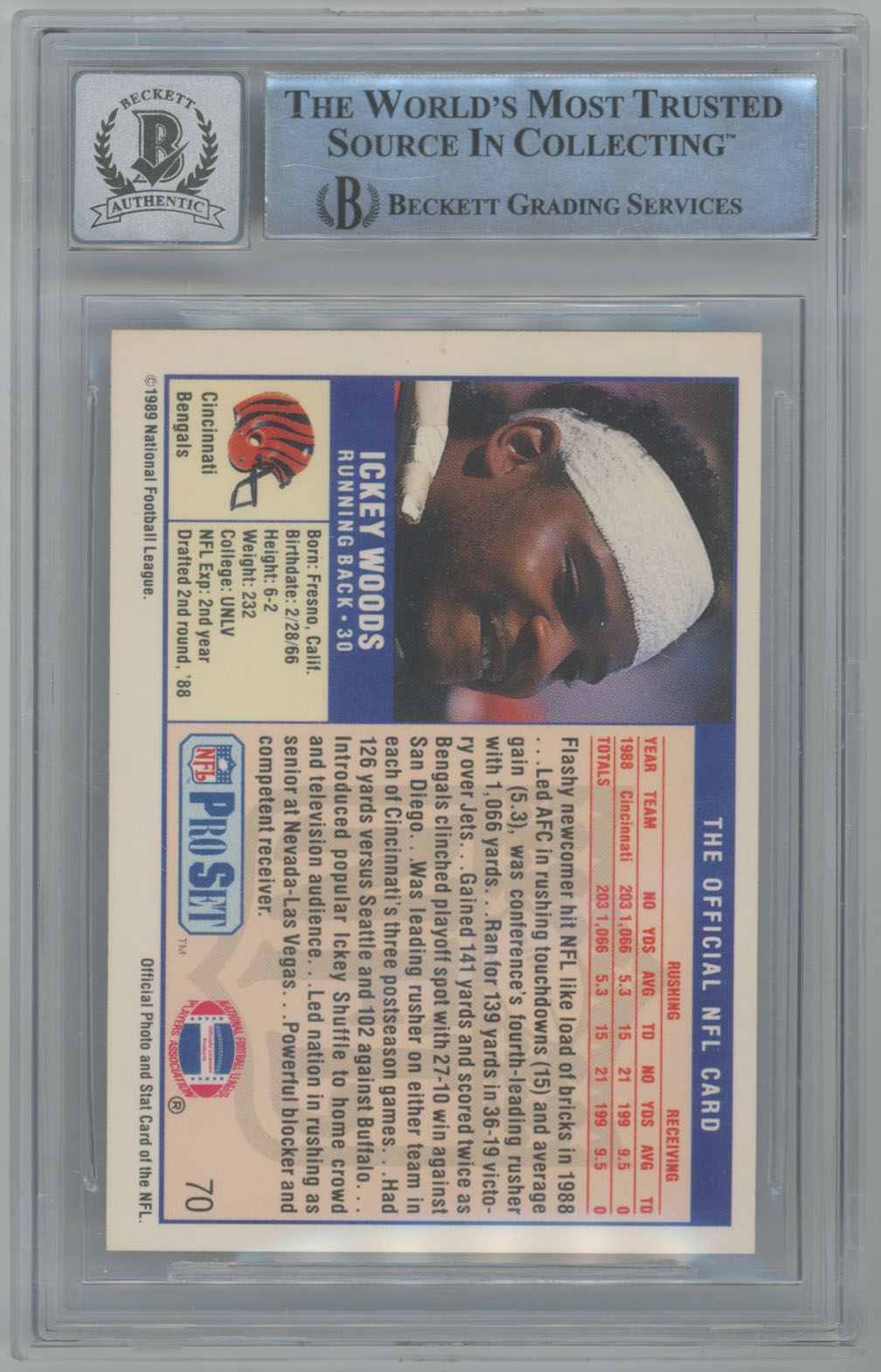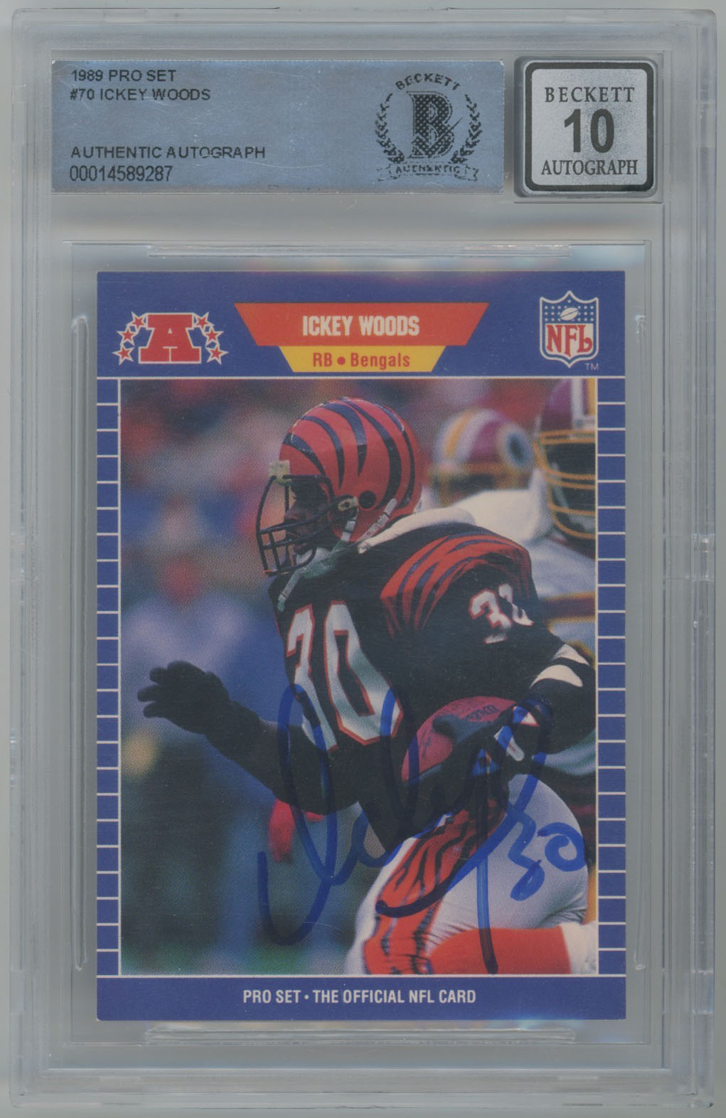 1989 Pro Set 70 Ickey Woods Signed Card Beckett 10 (auto)