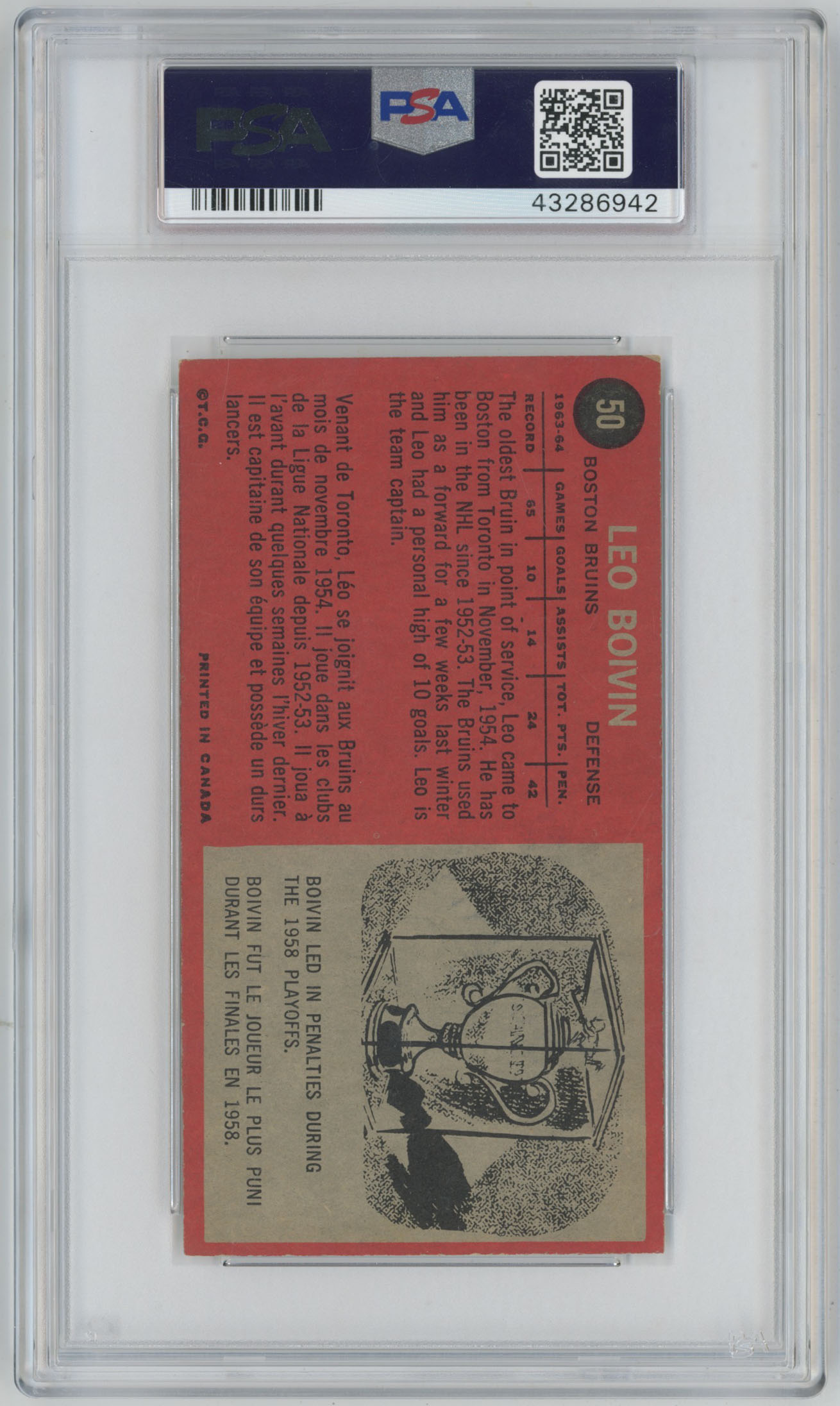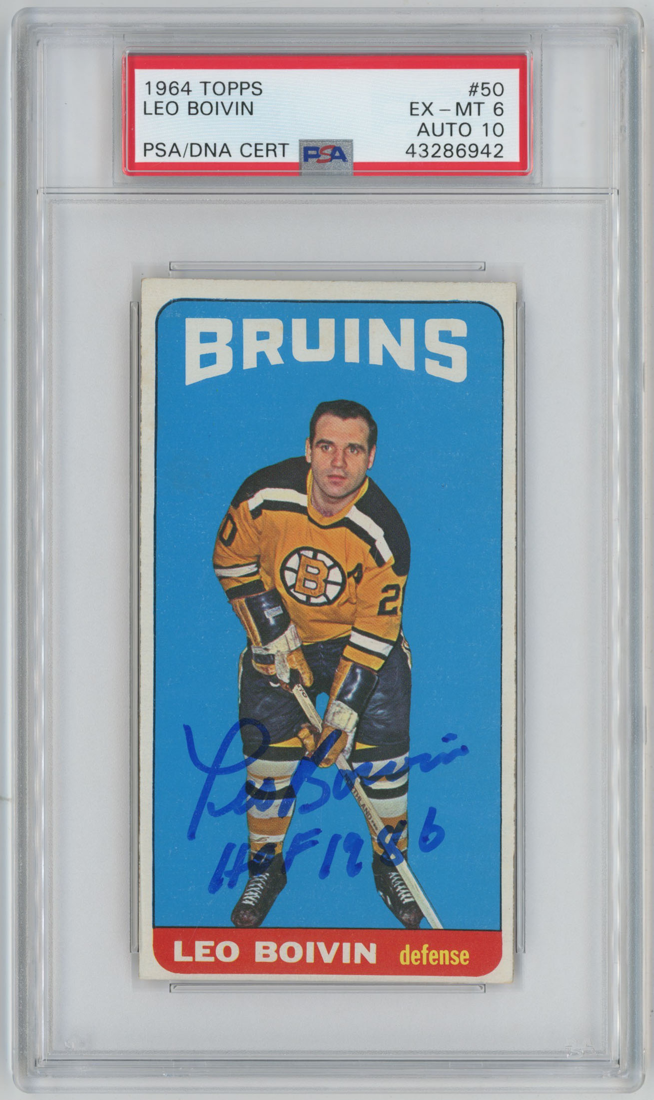 1964 Topps 50 Leo Boivin Signed Card 6 PSA Slabbed