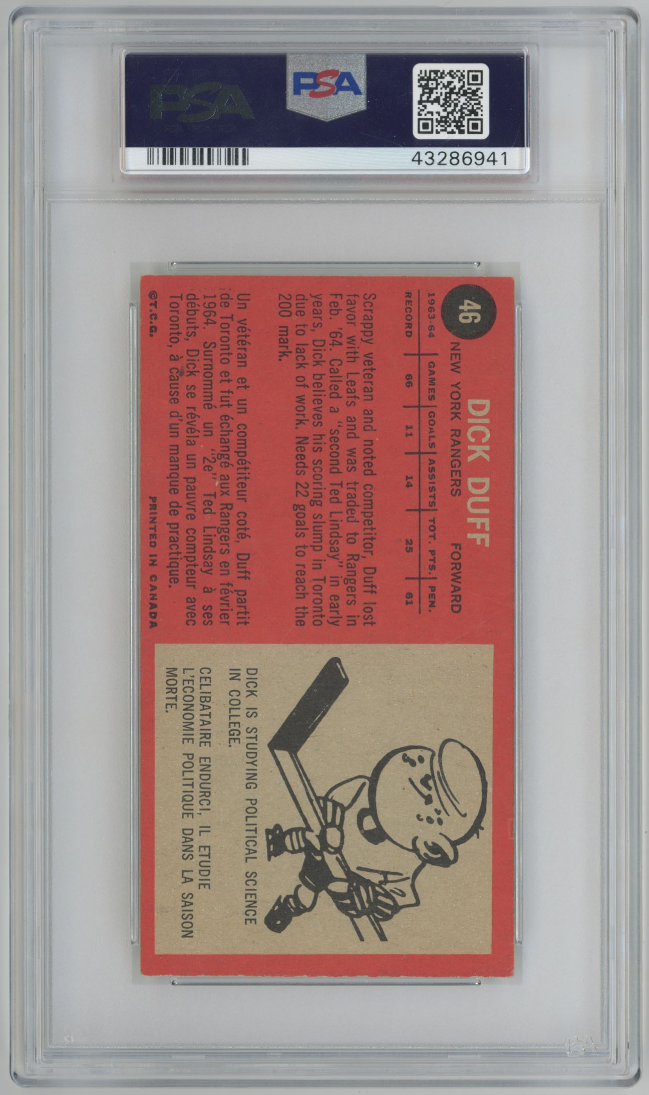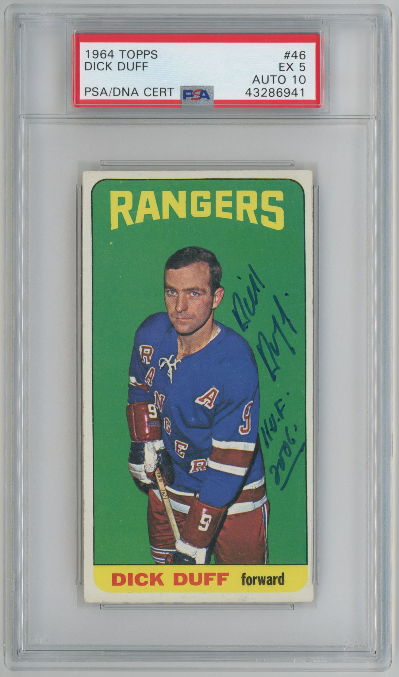 1964 Topps 46 Dick Duff Signed Card 5 PSA Slabbed