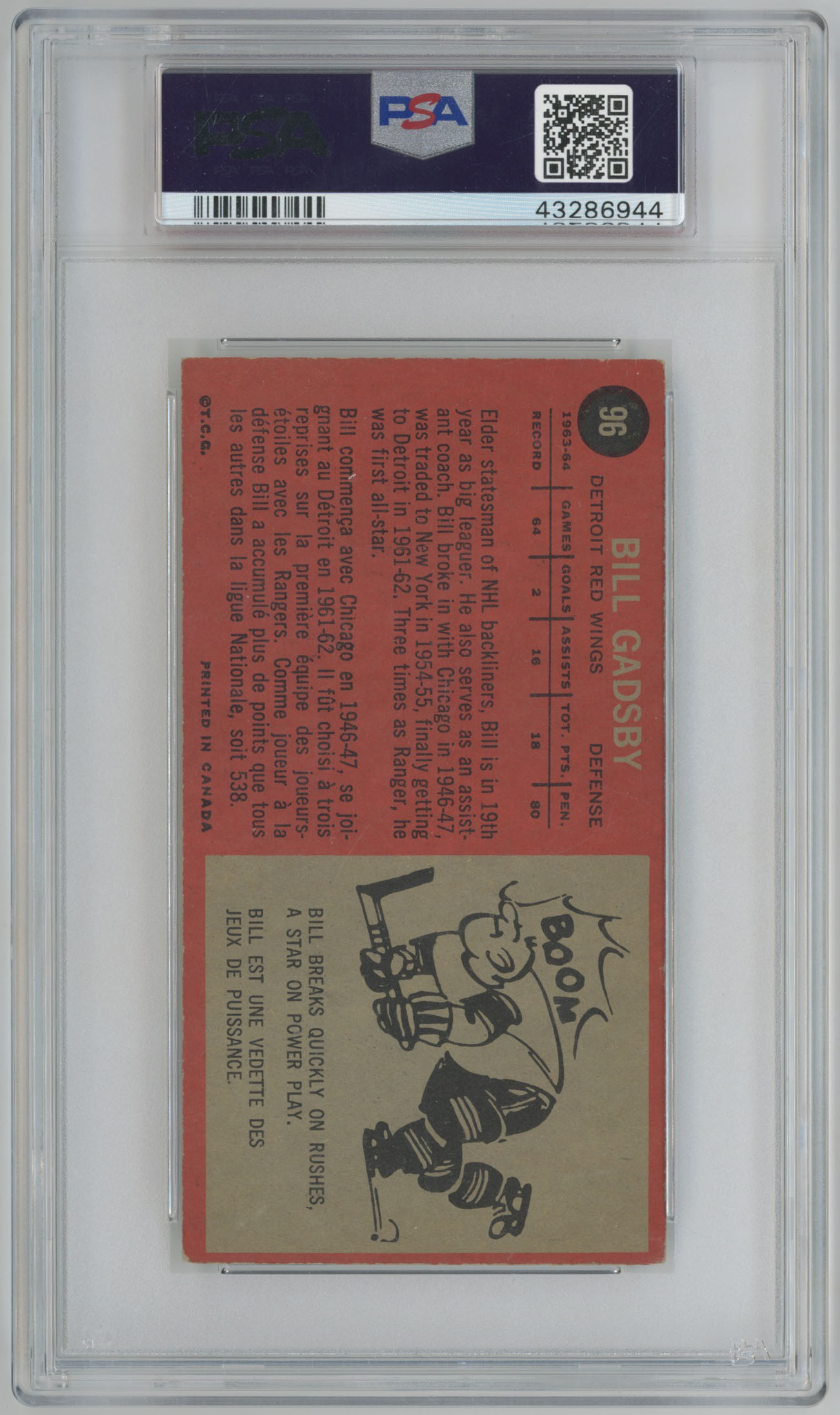 1964 Topps 96 Bill Gadsby Signed Card PSA Slabbed Detroit