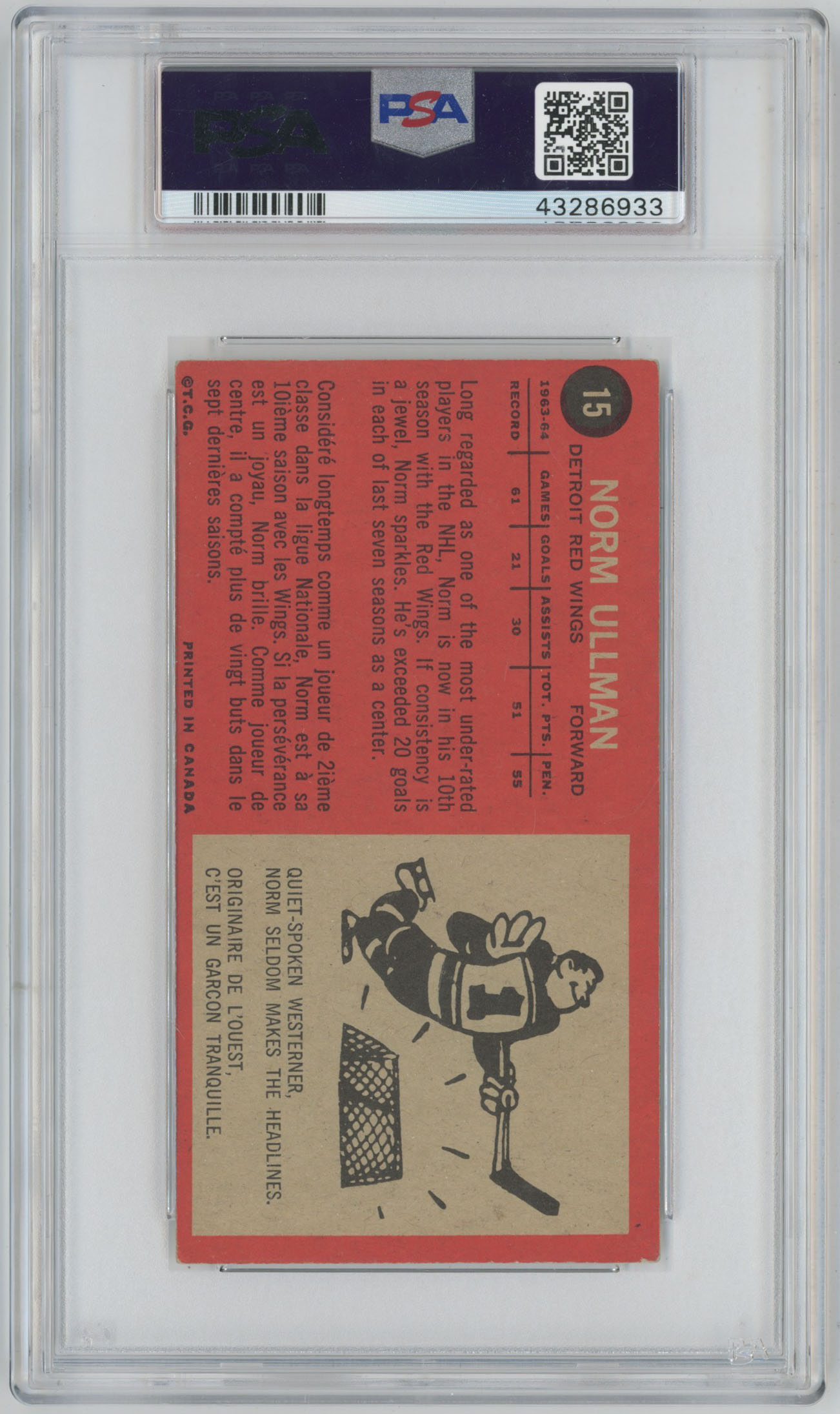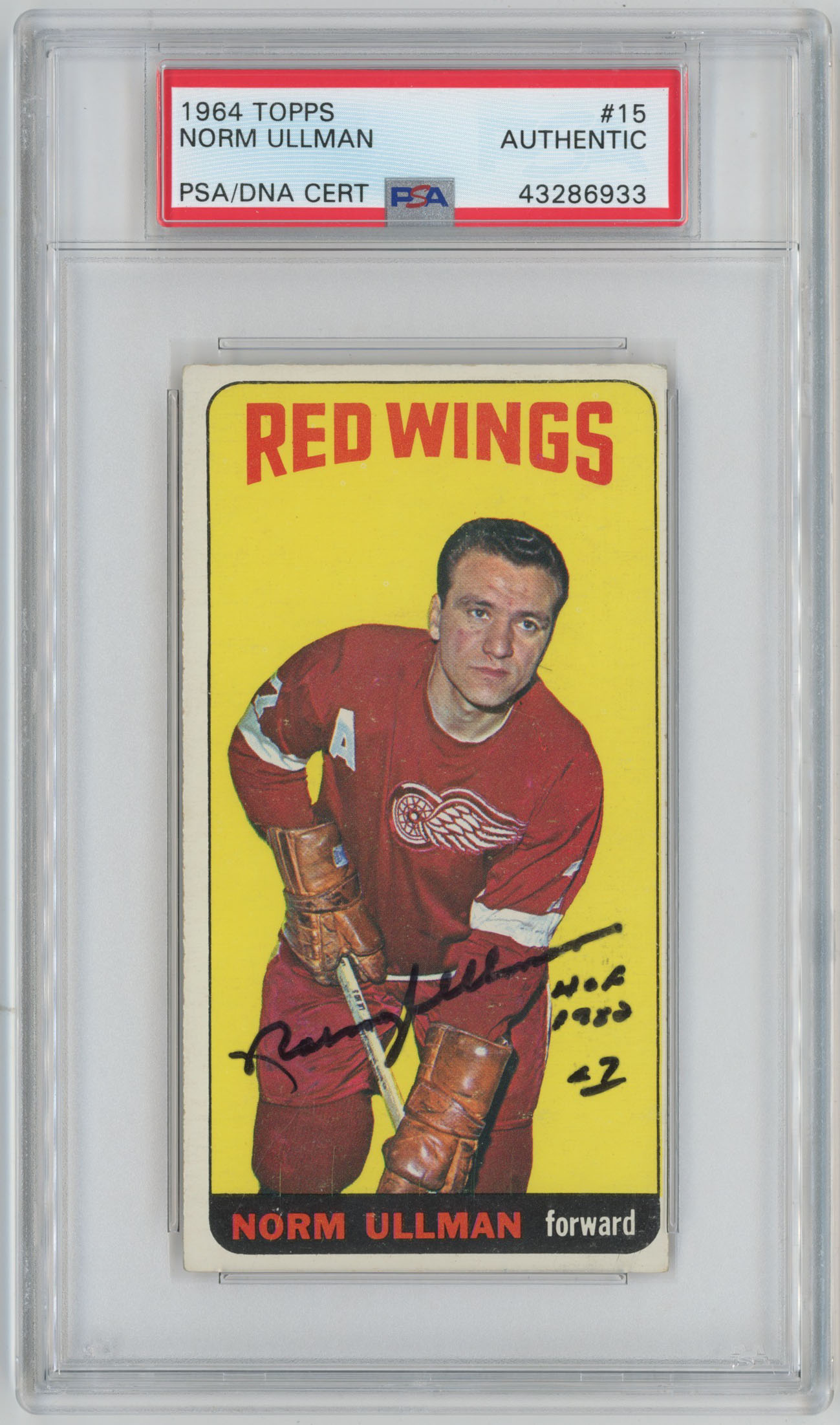 1964 Topps 15 Norm Ullman Signed Card PSA Slabbed Red