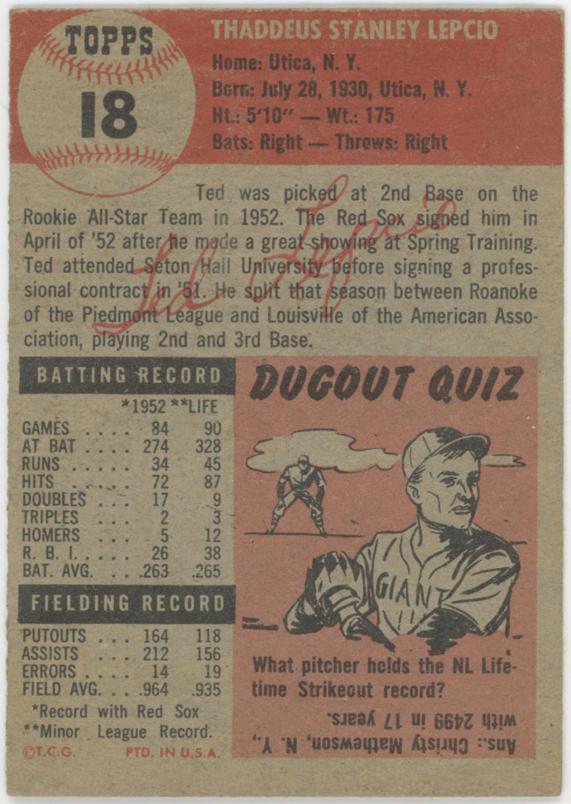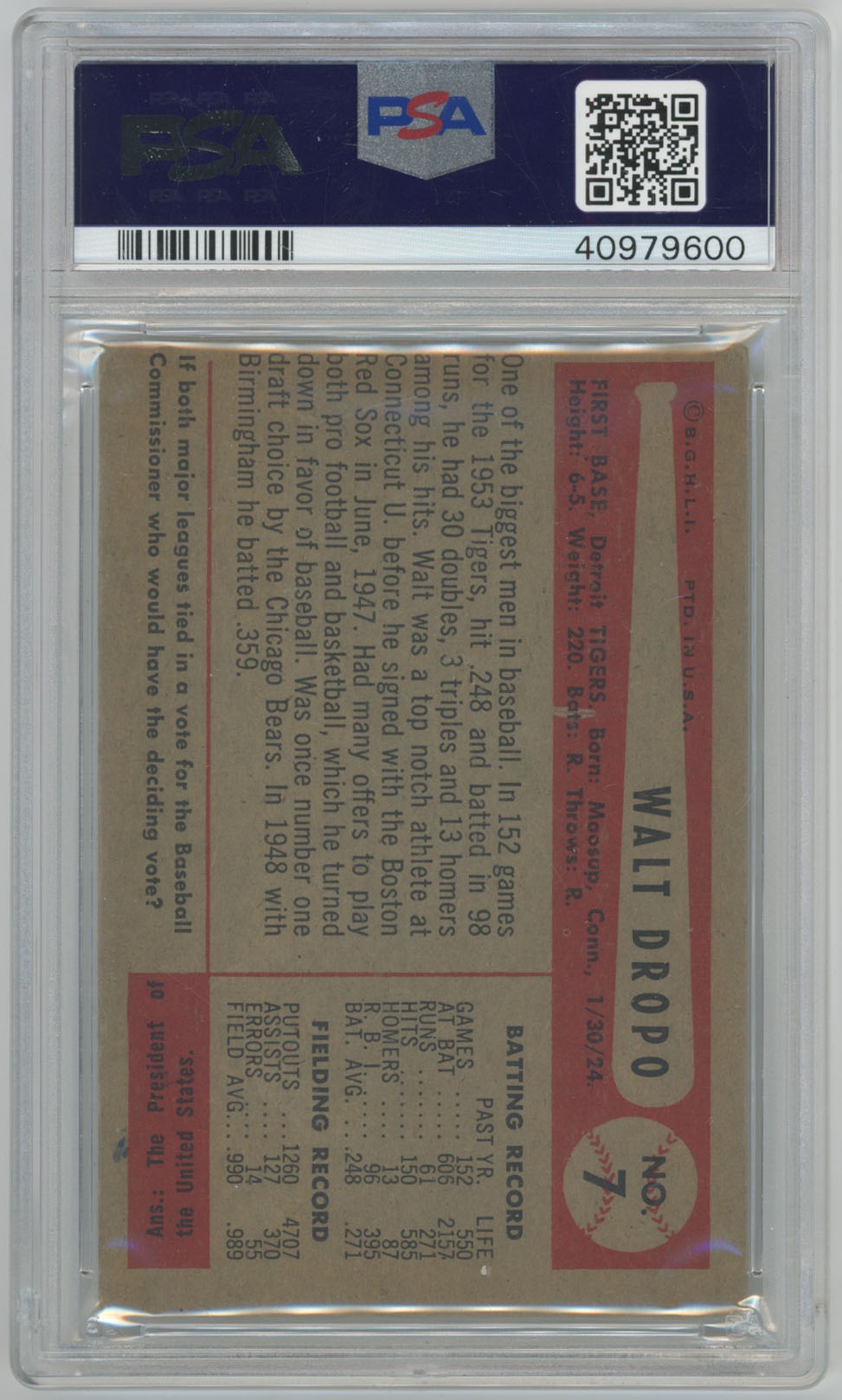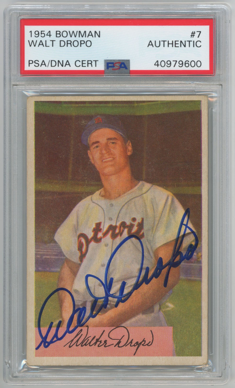 1954 Bowman 7 Walt Dropo Signed Card - PSA Slabbed