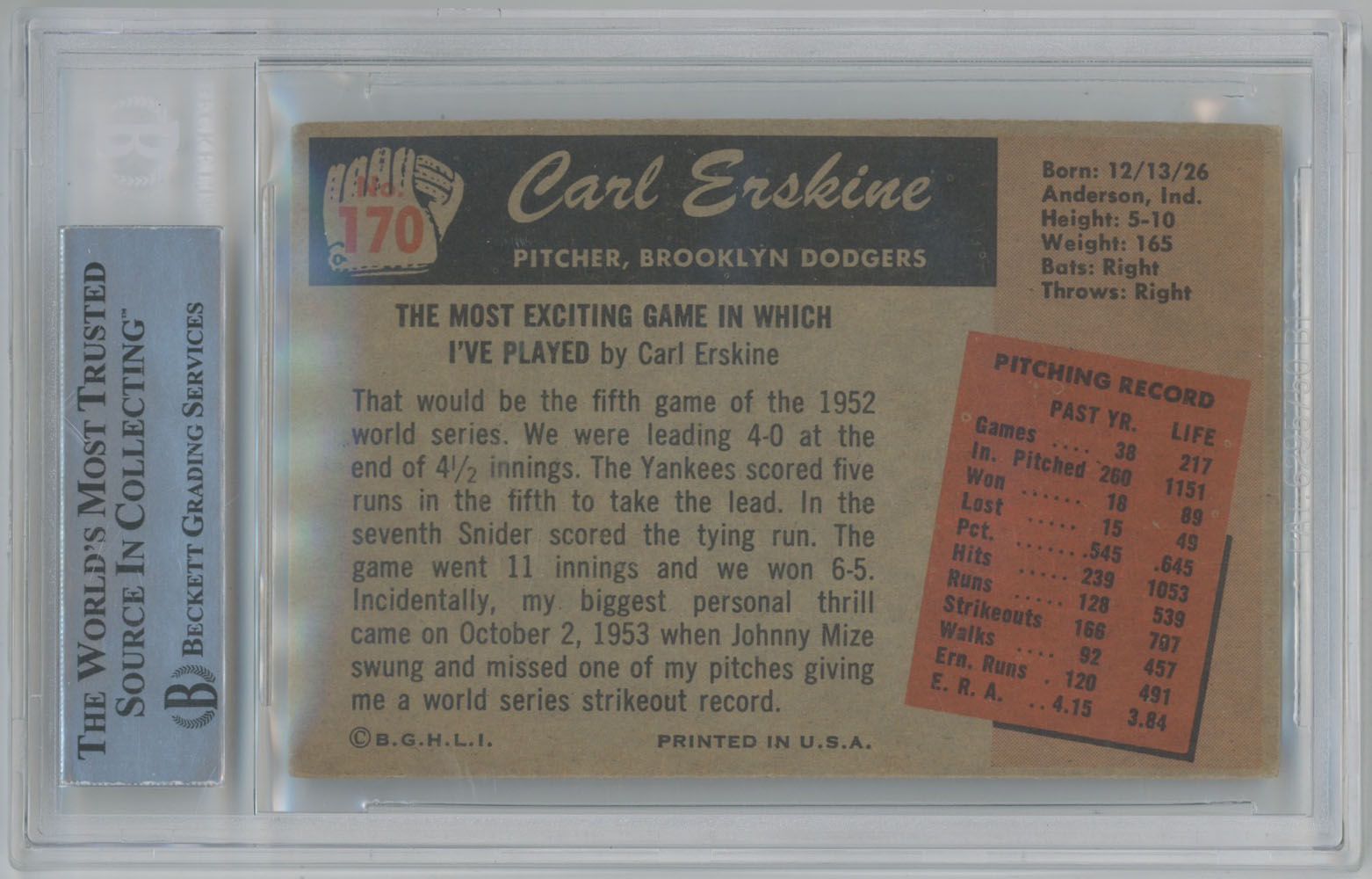 1955 Bowman 170 Carl Erskine Signed Card - Beckett Slabbed