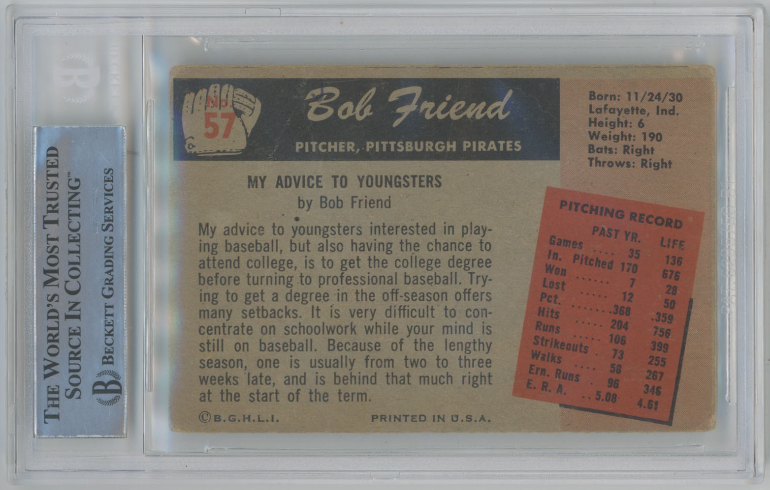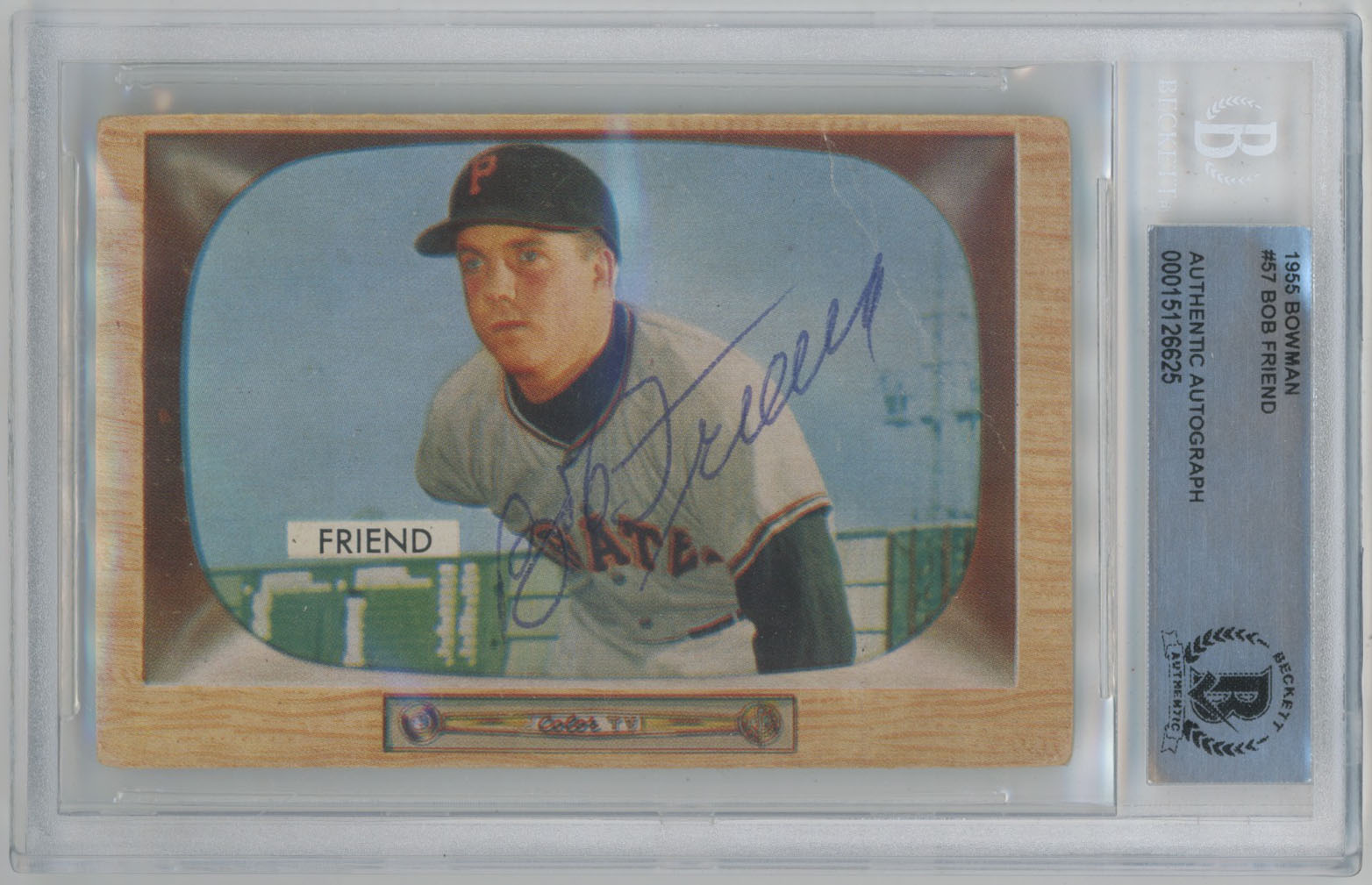 1955 Bowman 67 Bob Friend Signed Card - Beckett Slabbed