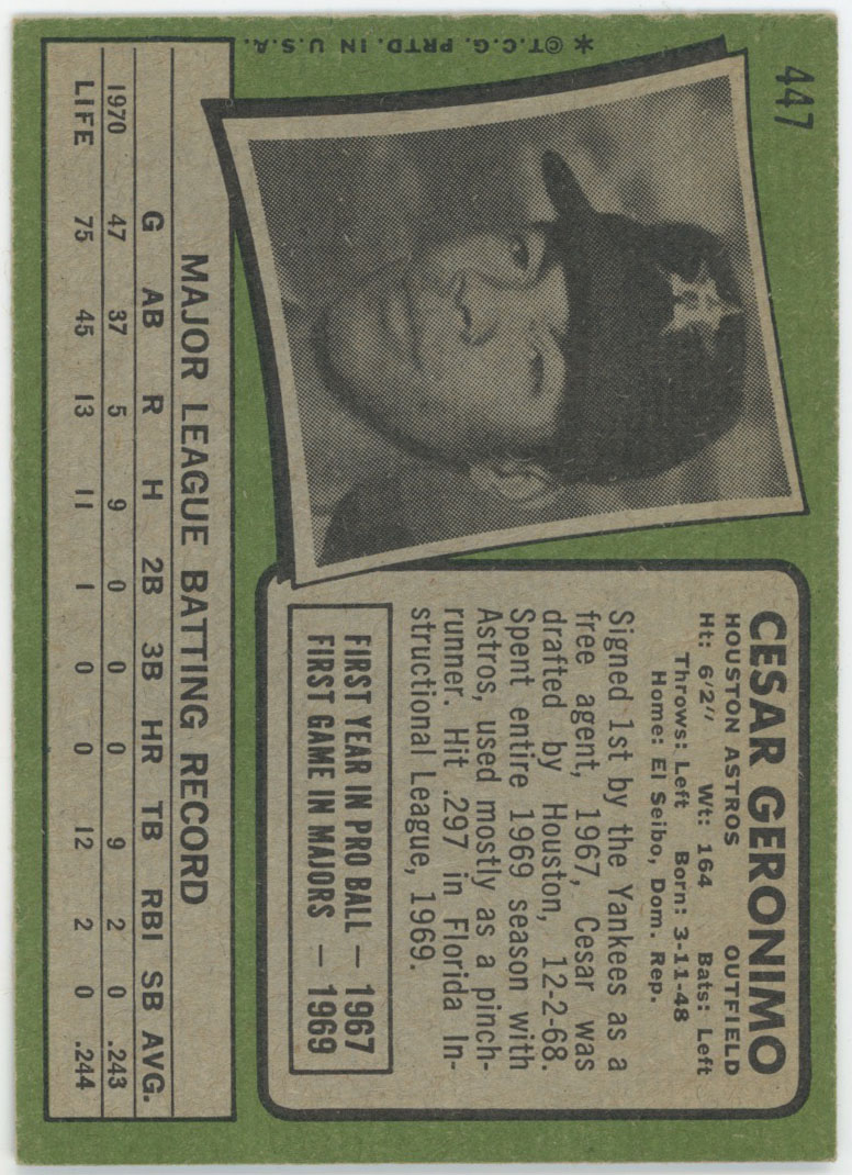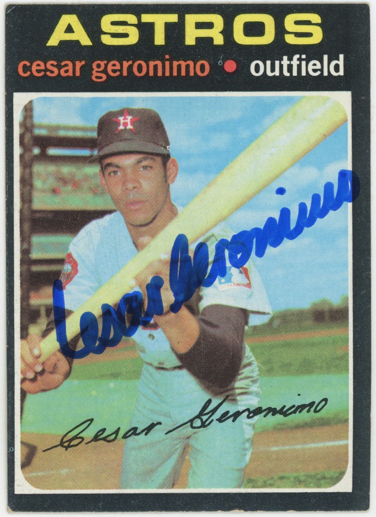 1971 Topps 447 Cesar Geronimo Signed Rookie Card 9.5