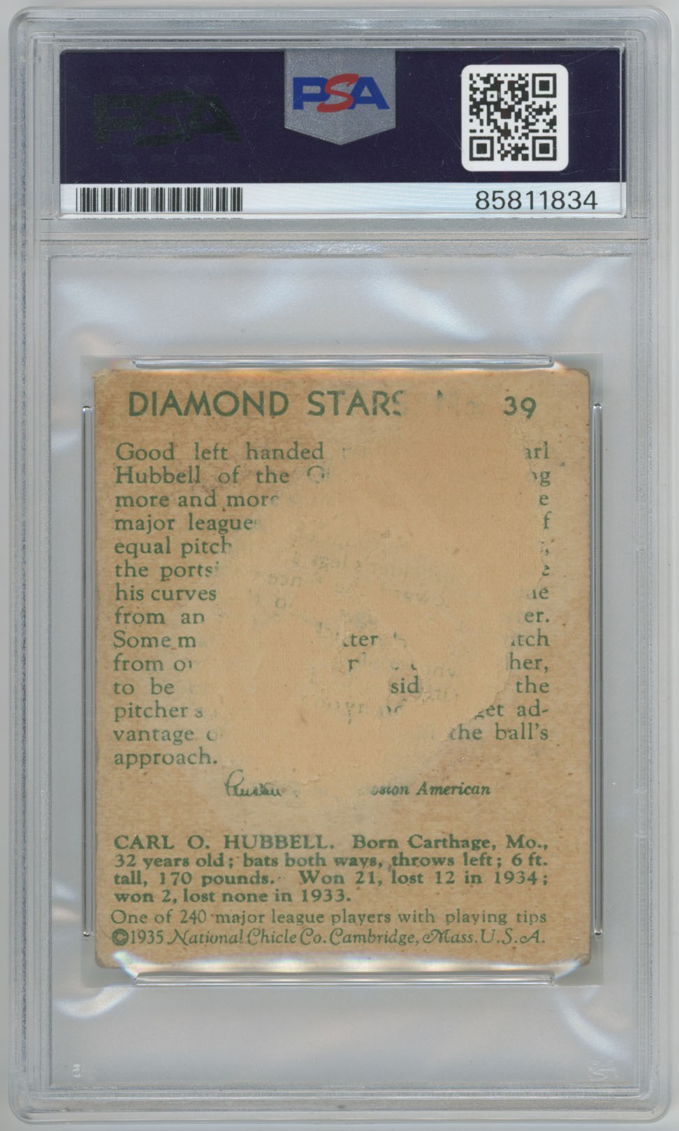 1934 Diamond Stars 39 Carl Hubbell PSA 10 (auto)