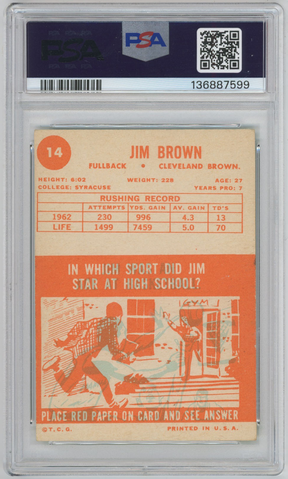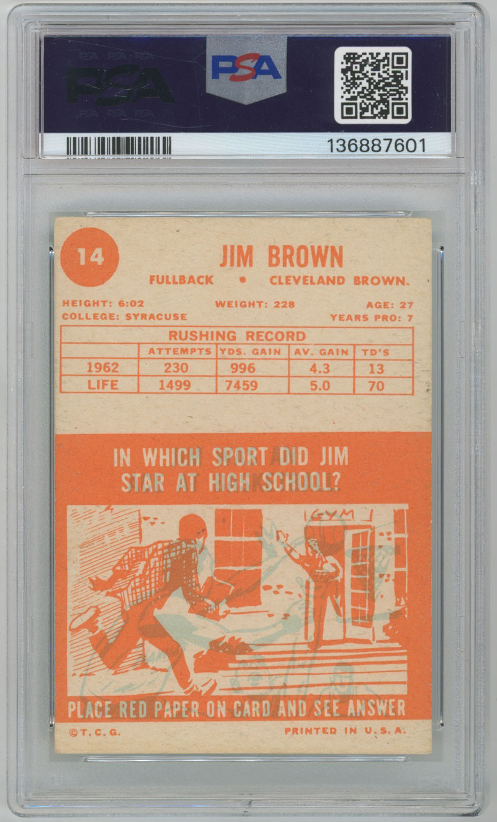 1963 Topps 14 Jim Brown PSA 4