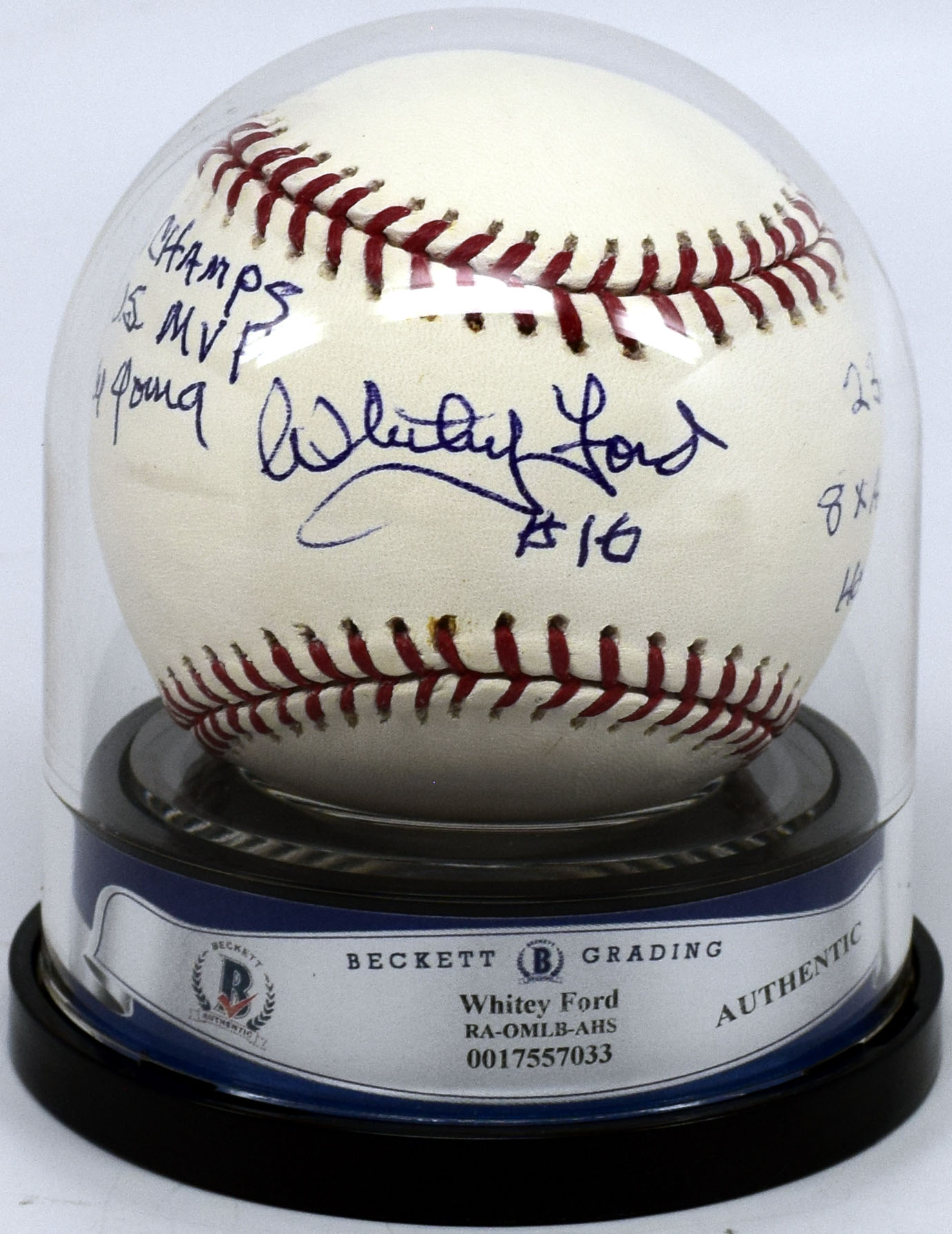 HOF Ford, Whitey 9 (Budig Mantle ball w/inscription) JSA LOA (CARD)