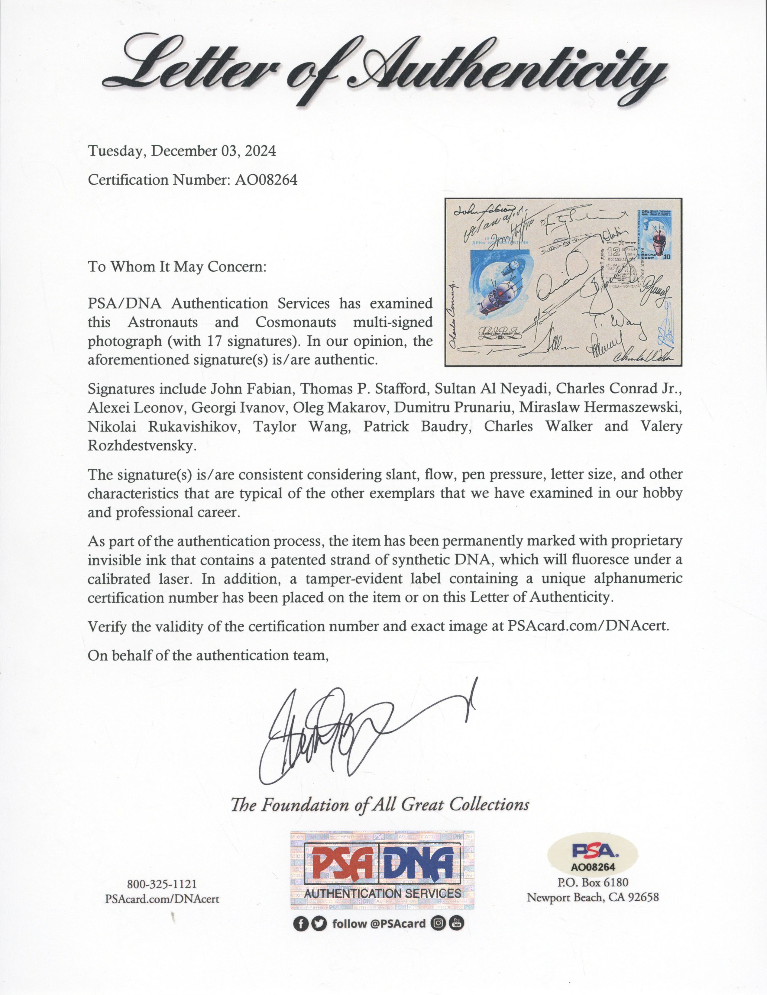 Astronauts/Cosmonauts Signed Postal Cover (17 sigs) 9 PSA DNA (FULL)