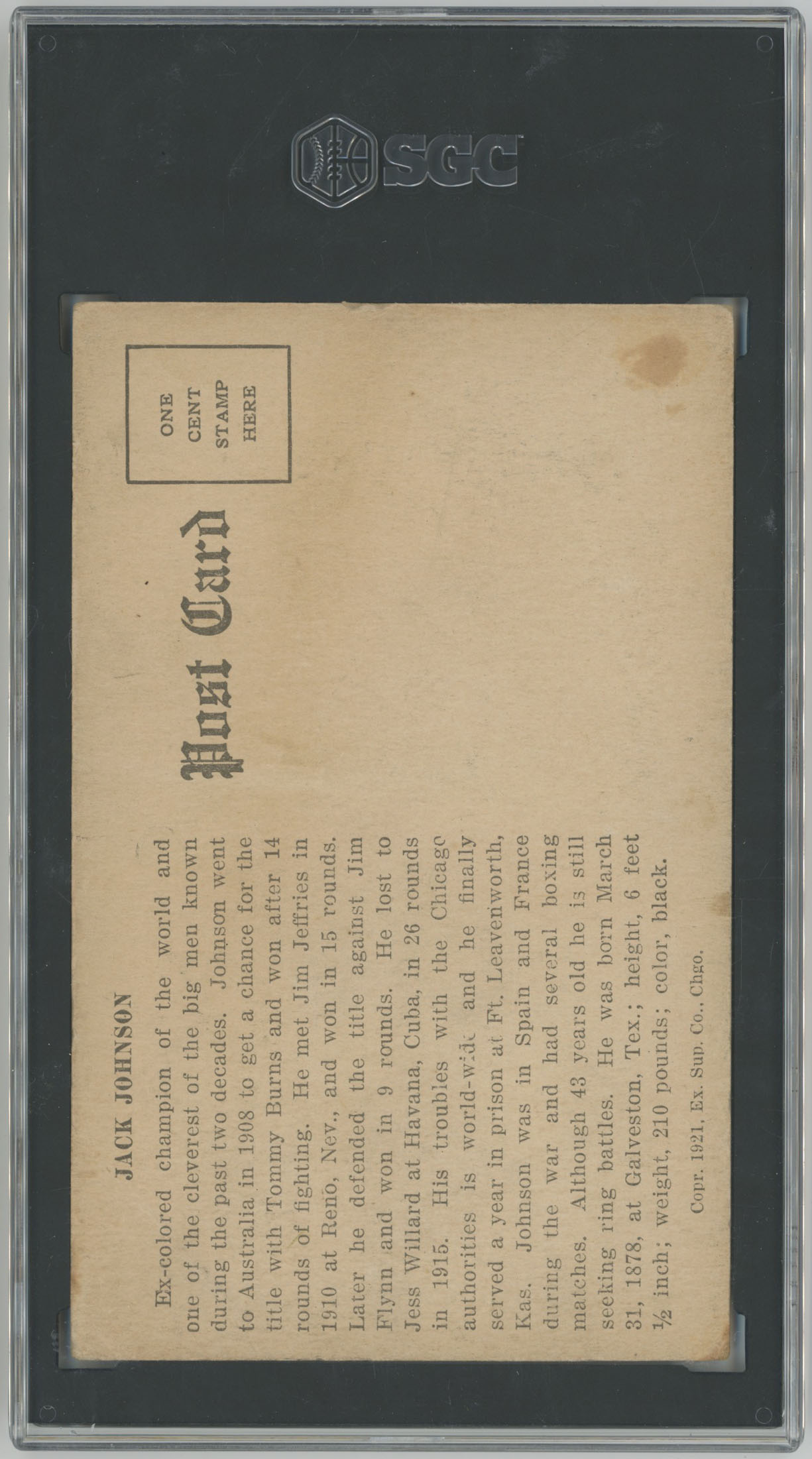 1921 Exhibit Jack Johnson SGC A