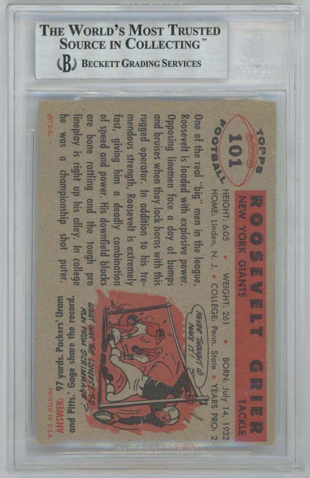 1956 Topps 101 Roosevelt Grier Signed Rookie Card w/inscription - Beckett Slabbed