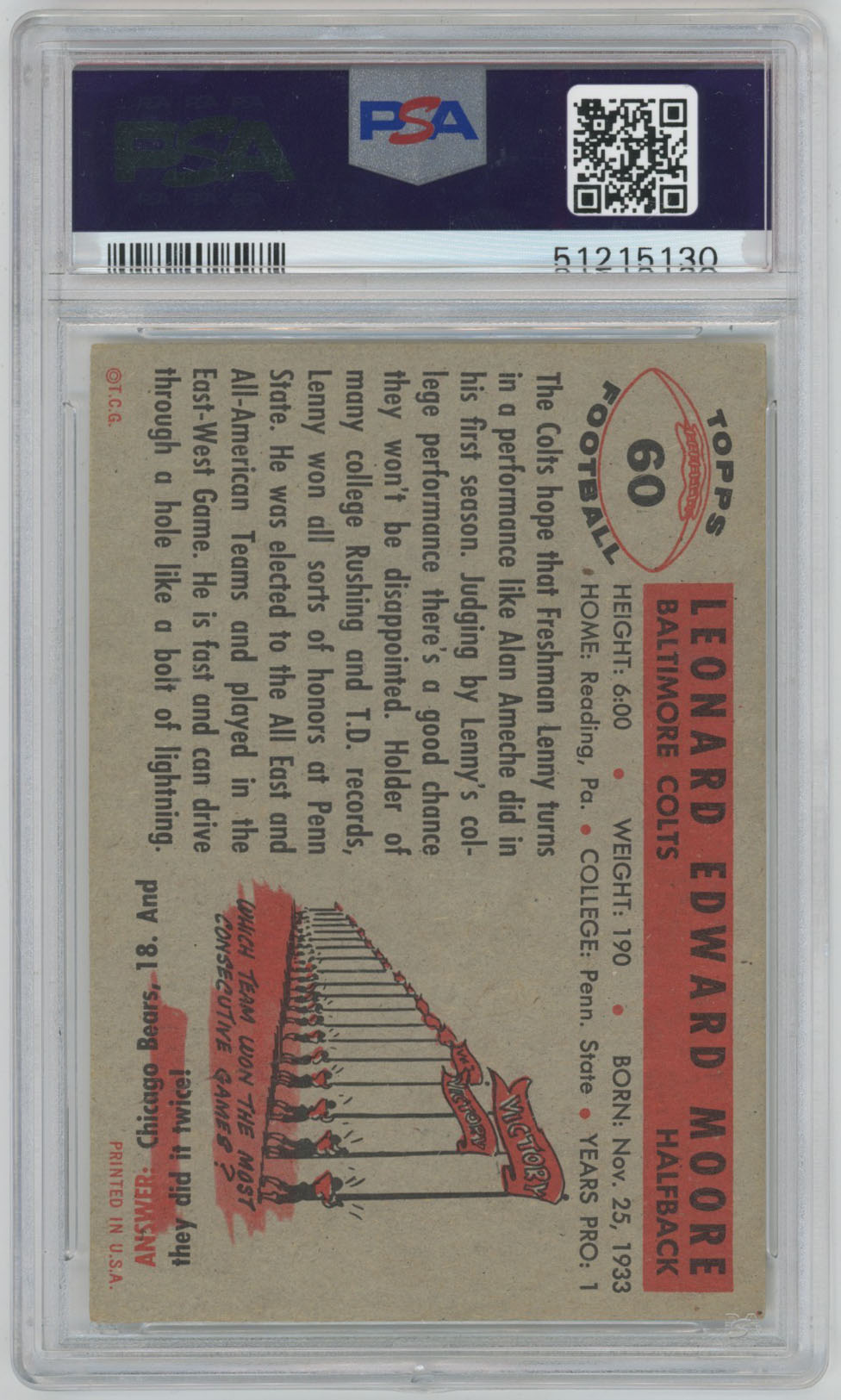 1956 Topps 60 Lenny Moore Signed Rookie Card PSA Slabbed