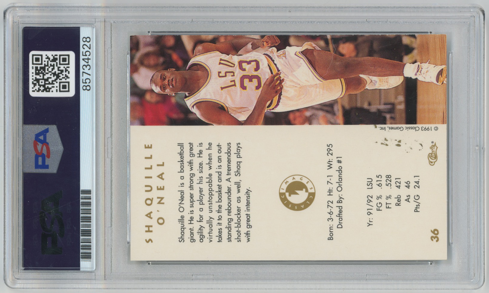1993 Classic Minor League Shaquille ONeal Signed Card 9 (PSA Slabbed A)