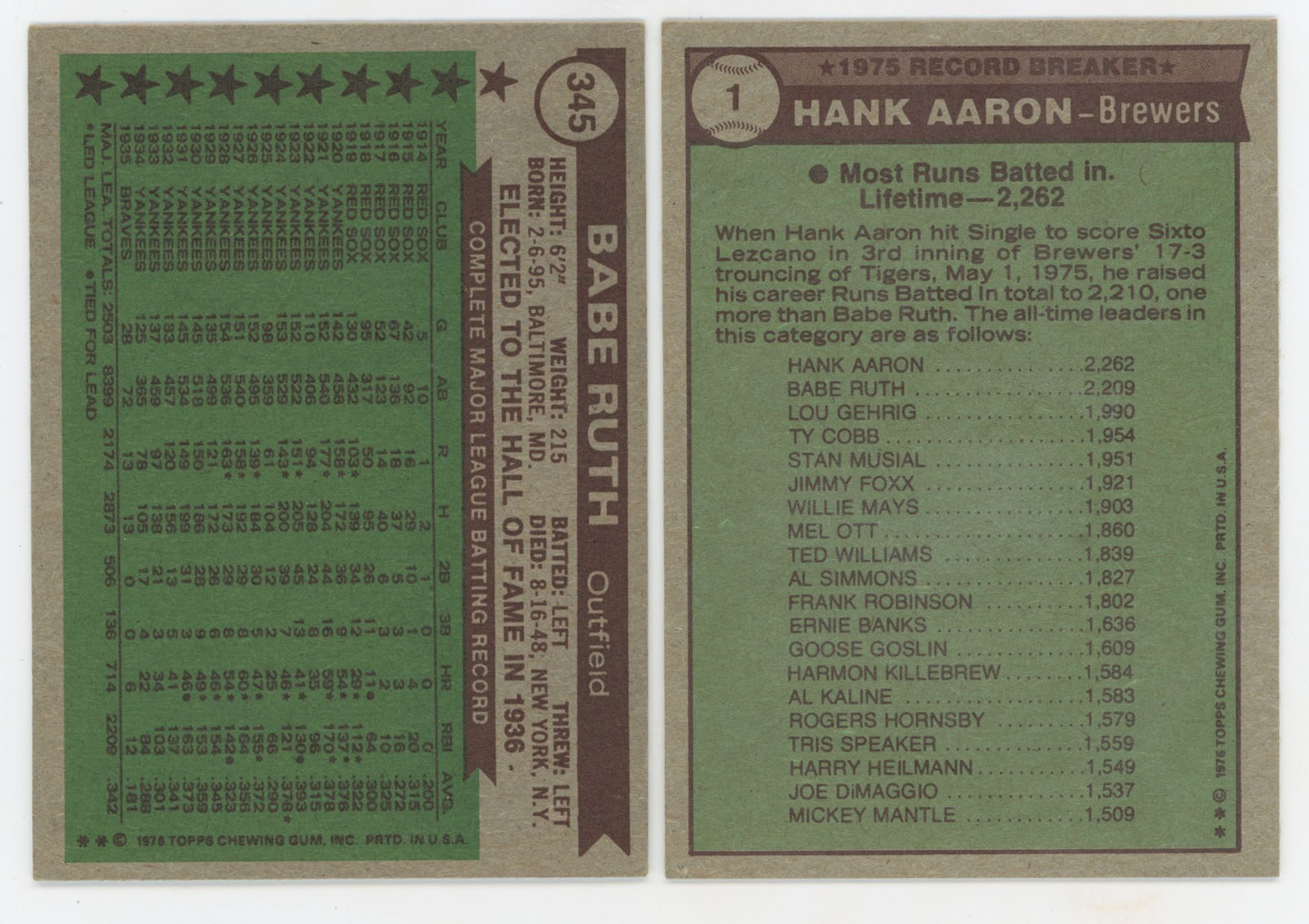 1976 Topps 345 Babe Ruth ATG NM