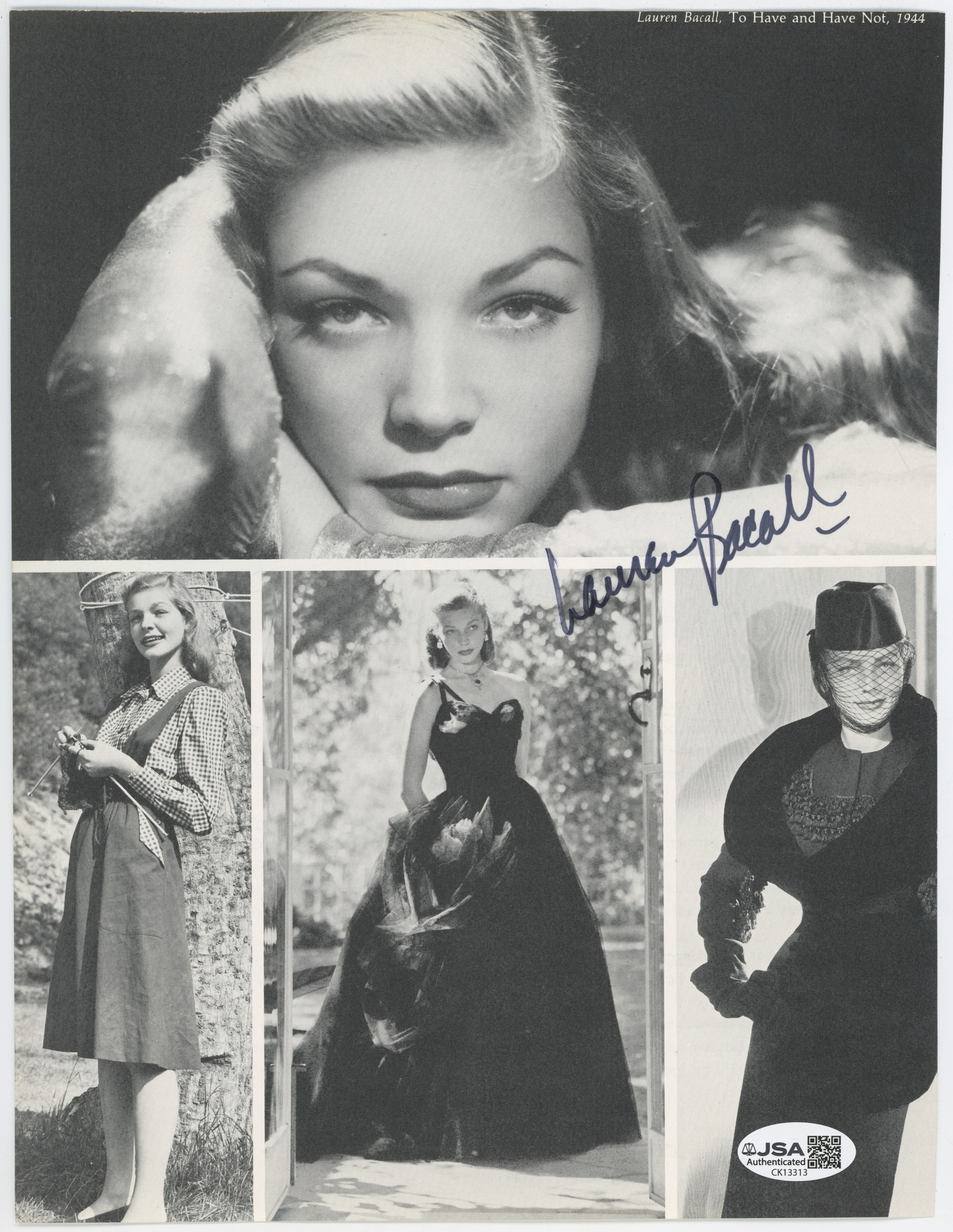 8 x 10 Bacall, Lauren 9 JSA LOA (CARD)