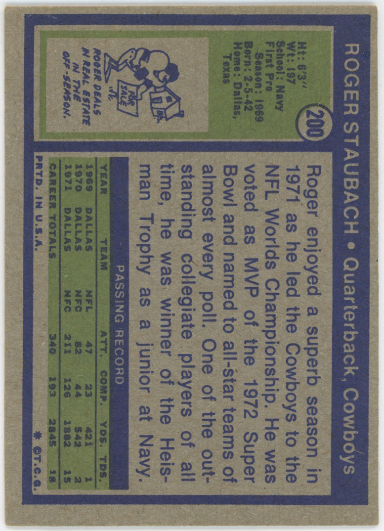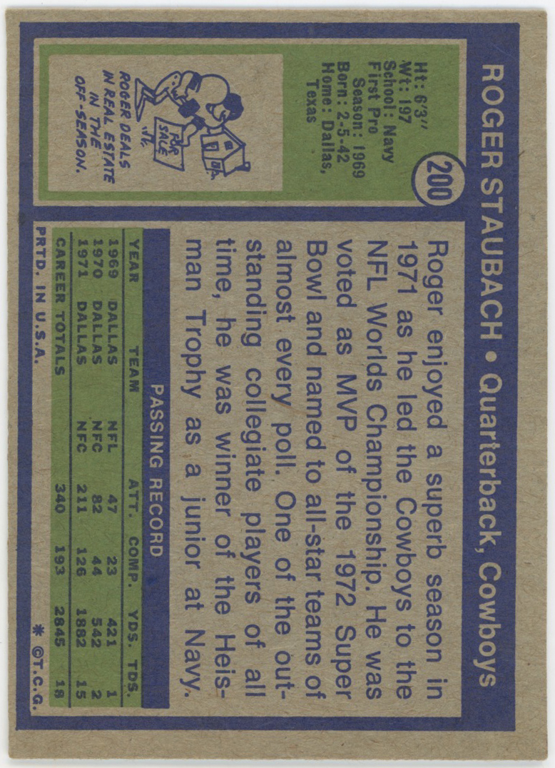 1972 Topps 200 Staubach RC VG-Ex/Ex