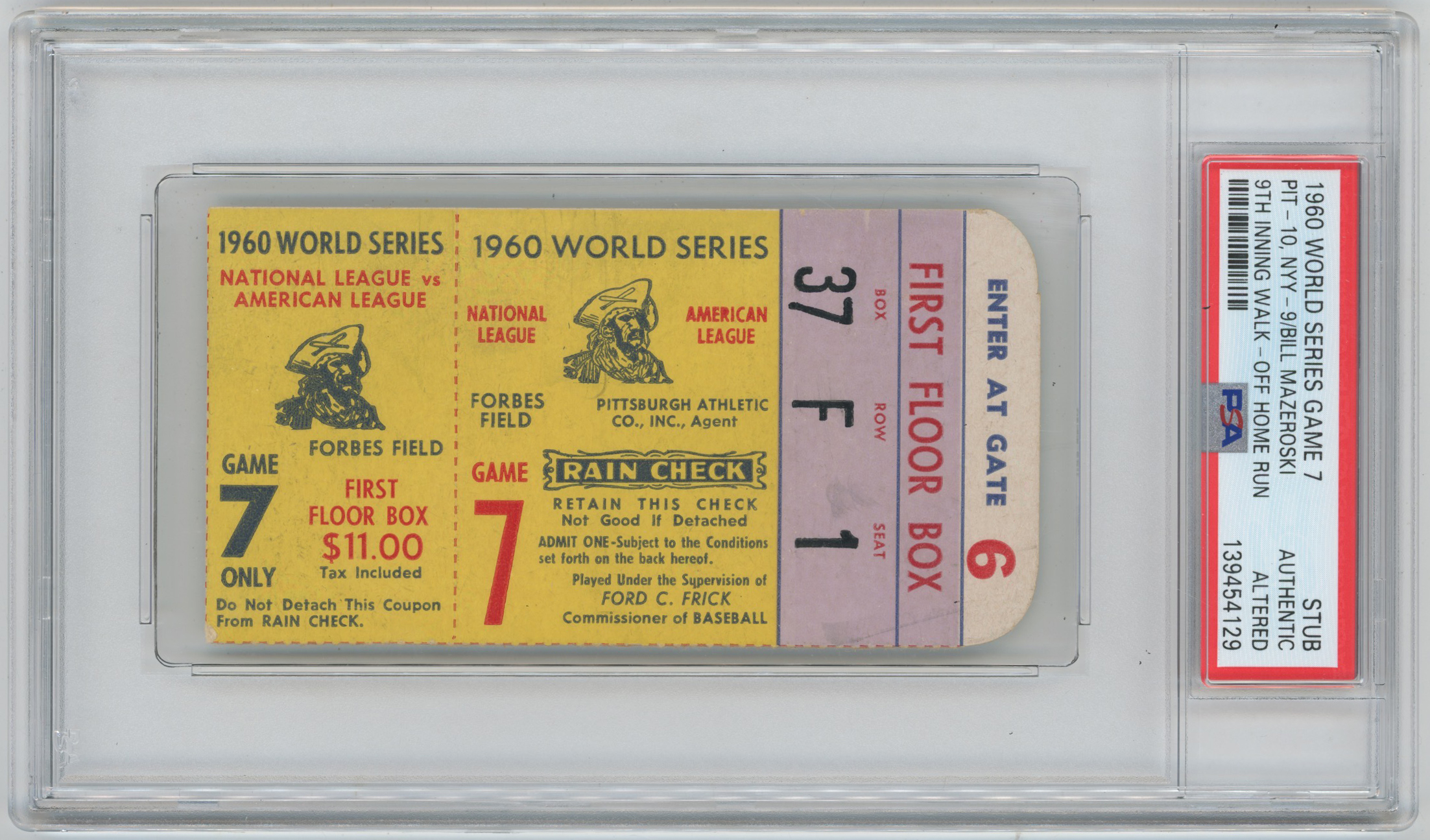 1967 Ticket World Series Game 7 VG